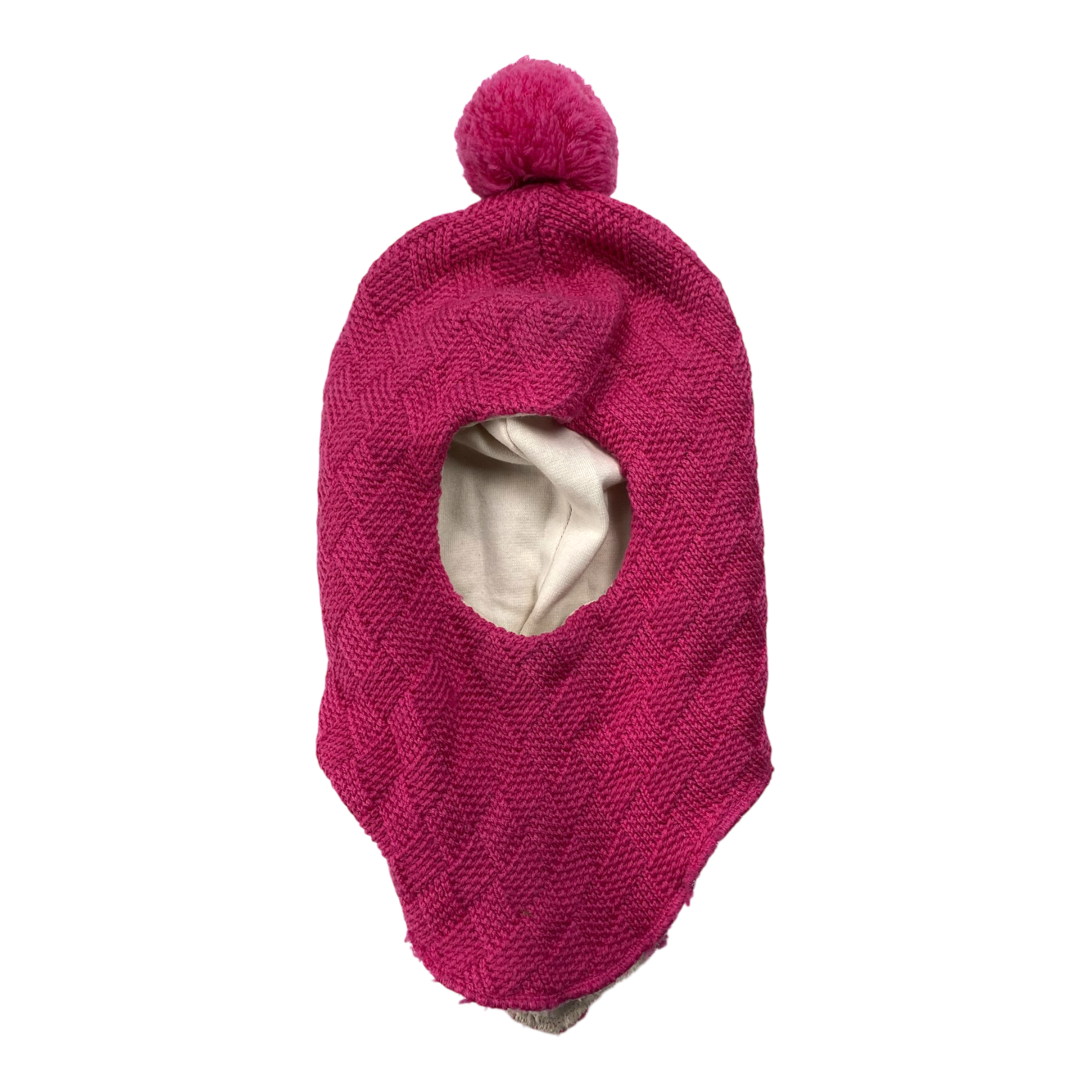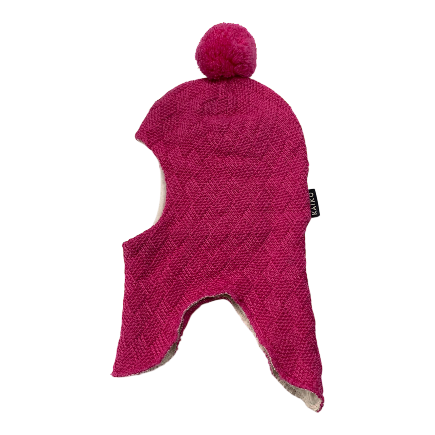 Kaiko’s grid balaclava is detailed with a diamond patterned knit. 100% cotton lining is reinforced with a double-layered polyester fleece at the ears.