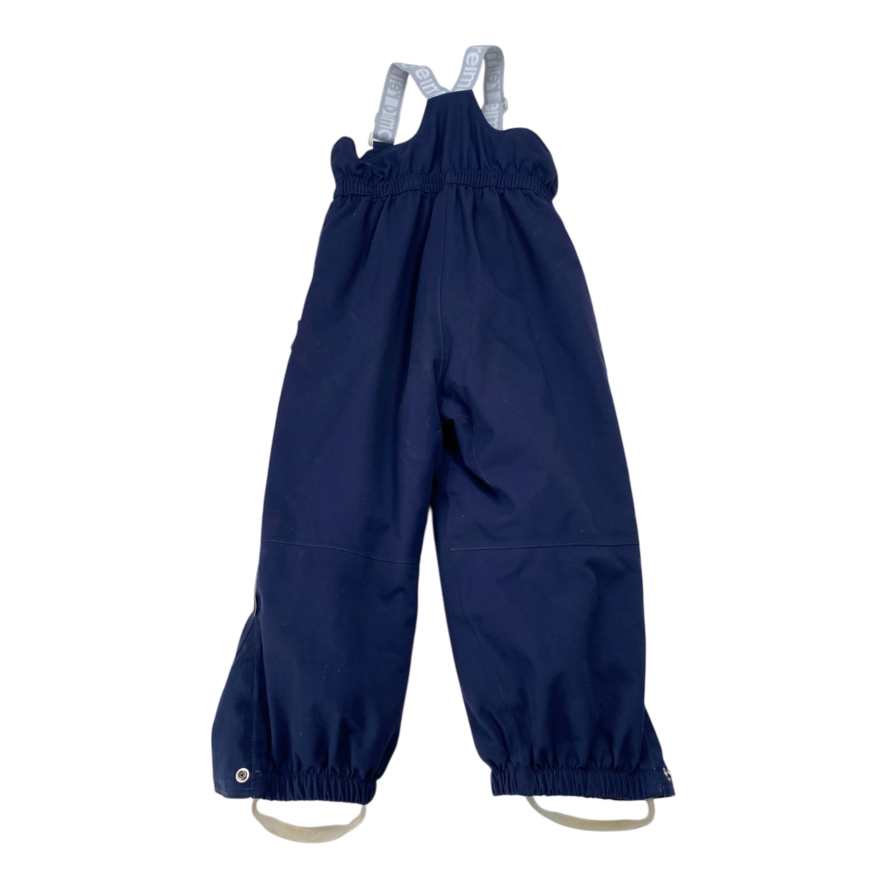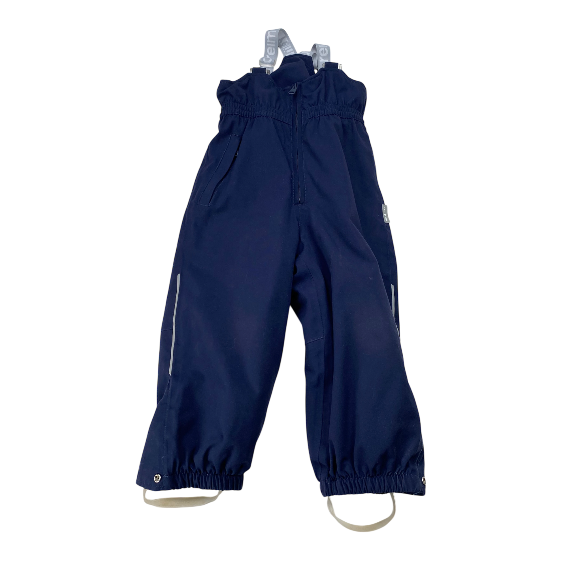 Reima Juoni kid's padded winter outdoor pants with adjustable elastic suspenders, one zip pocket, and snow locks at leg ends. The material is originally waterproof up to 10,000mm. All seams are sealed and the material is durable yet breathable.