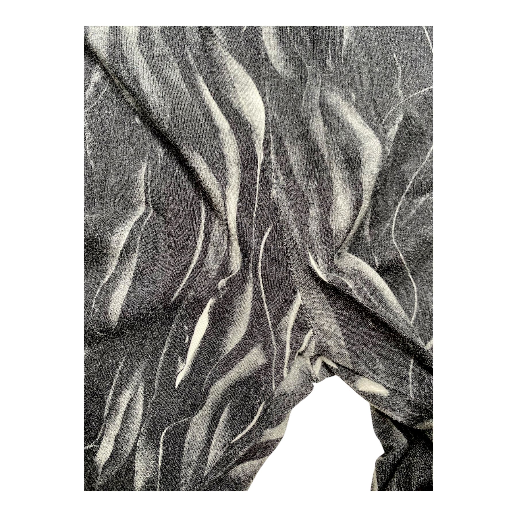 Vimma leggings with an elastic waistband in a grey and black abstract print.