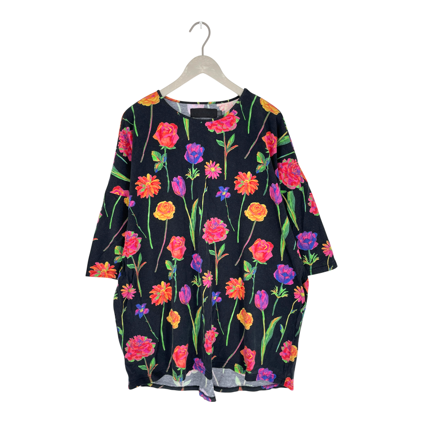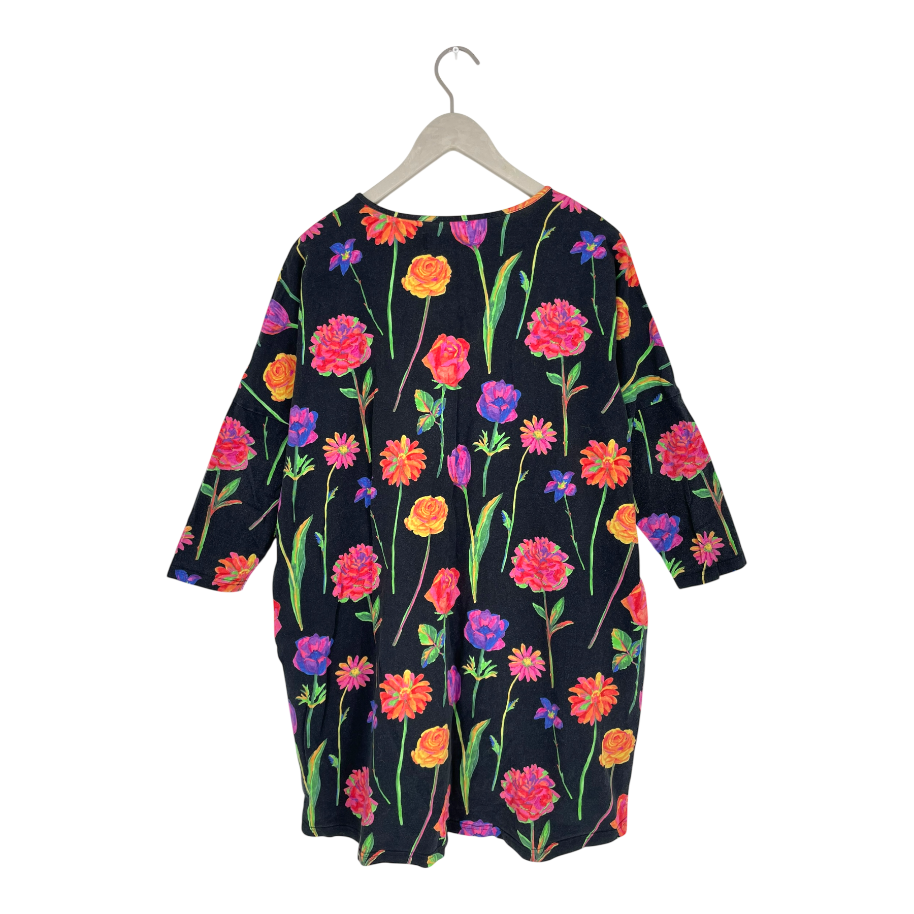 Vimma tunic shirt in Fleurs print with 3/4 long sleeves and pockets on the sides.