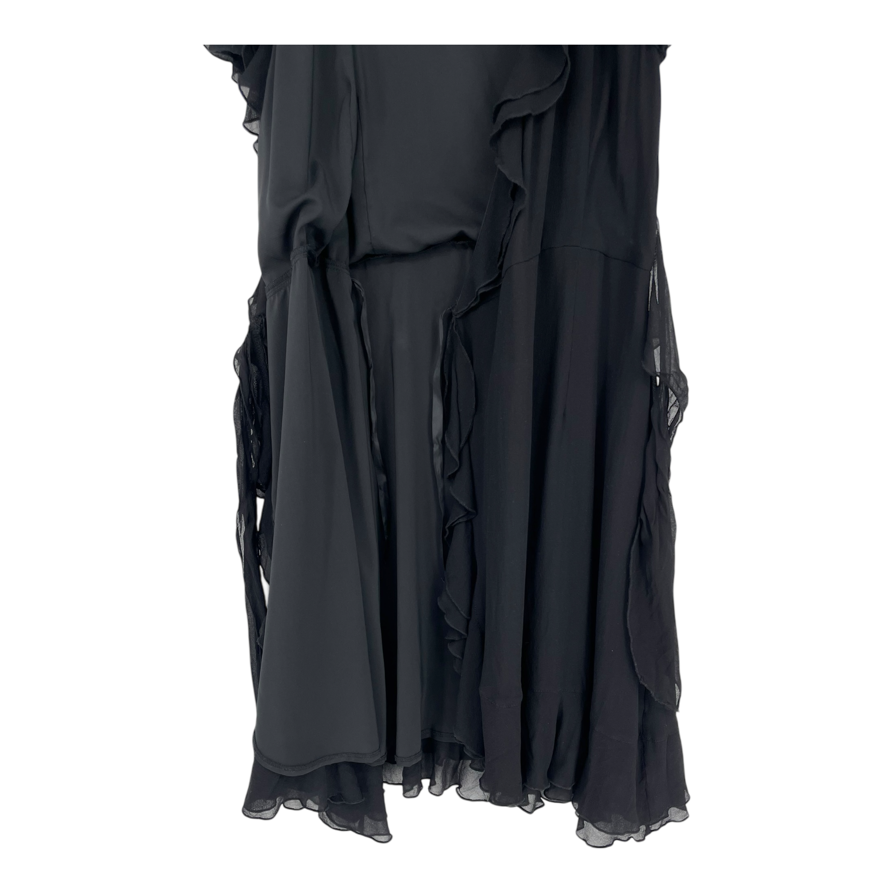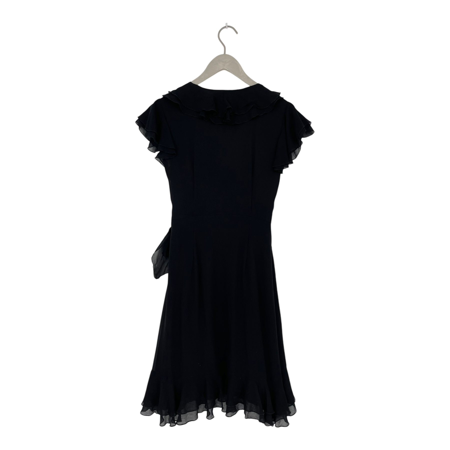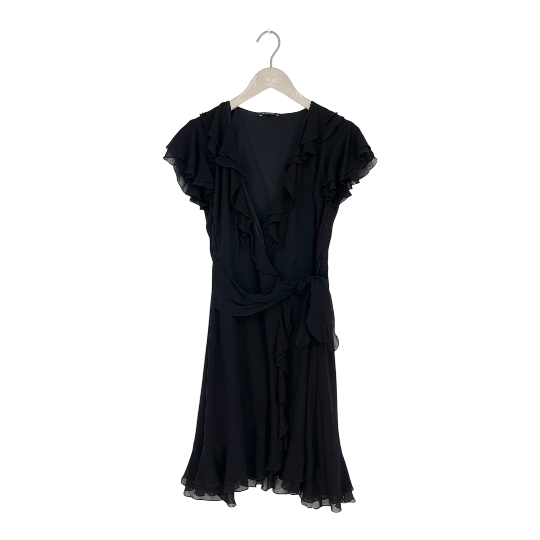 Andiata silk wrap dress with frills, knee length.