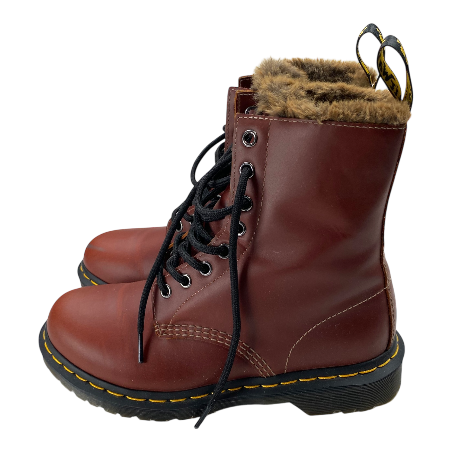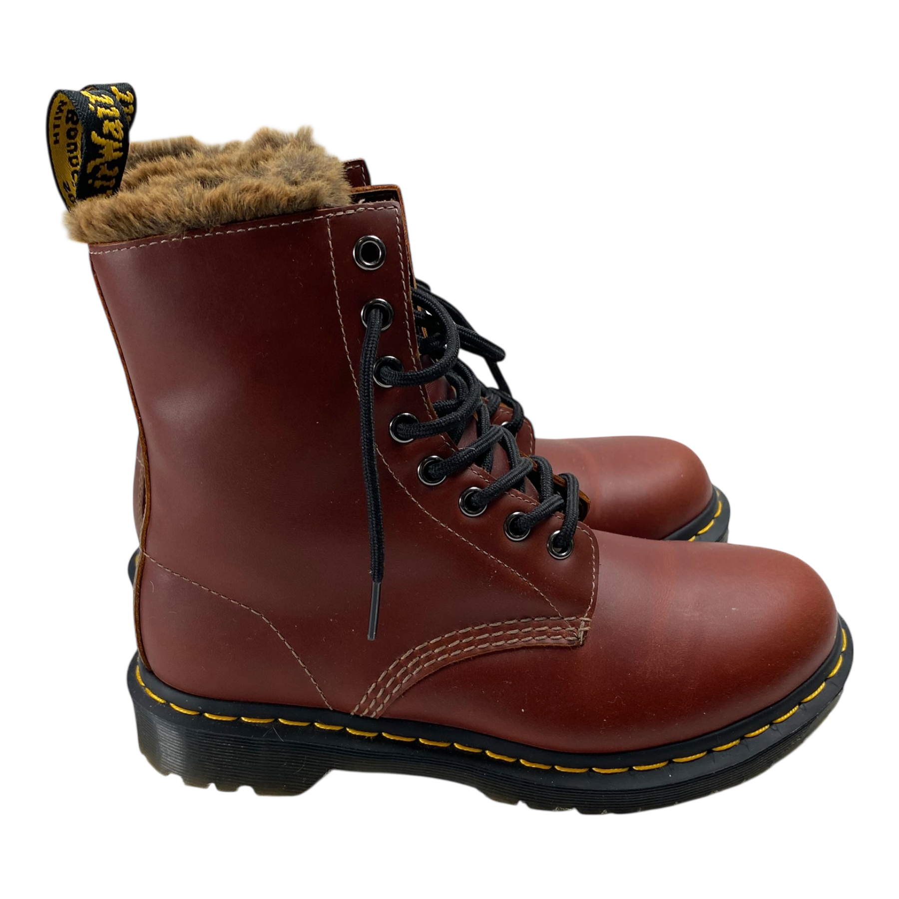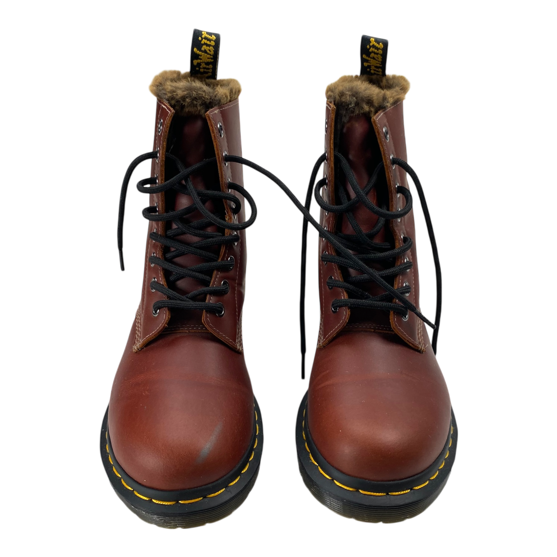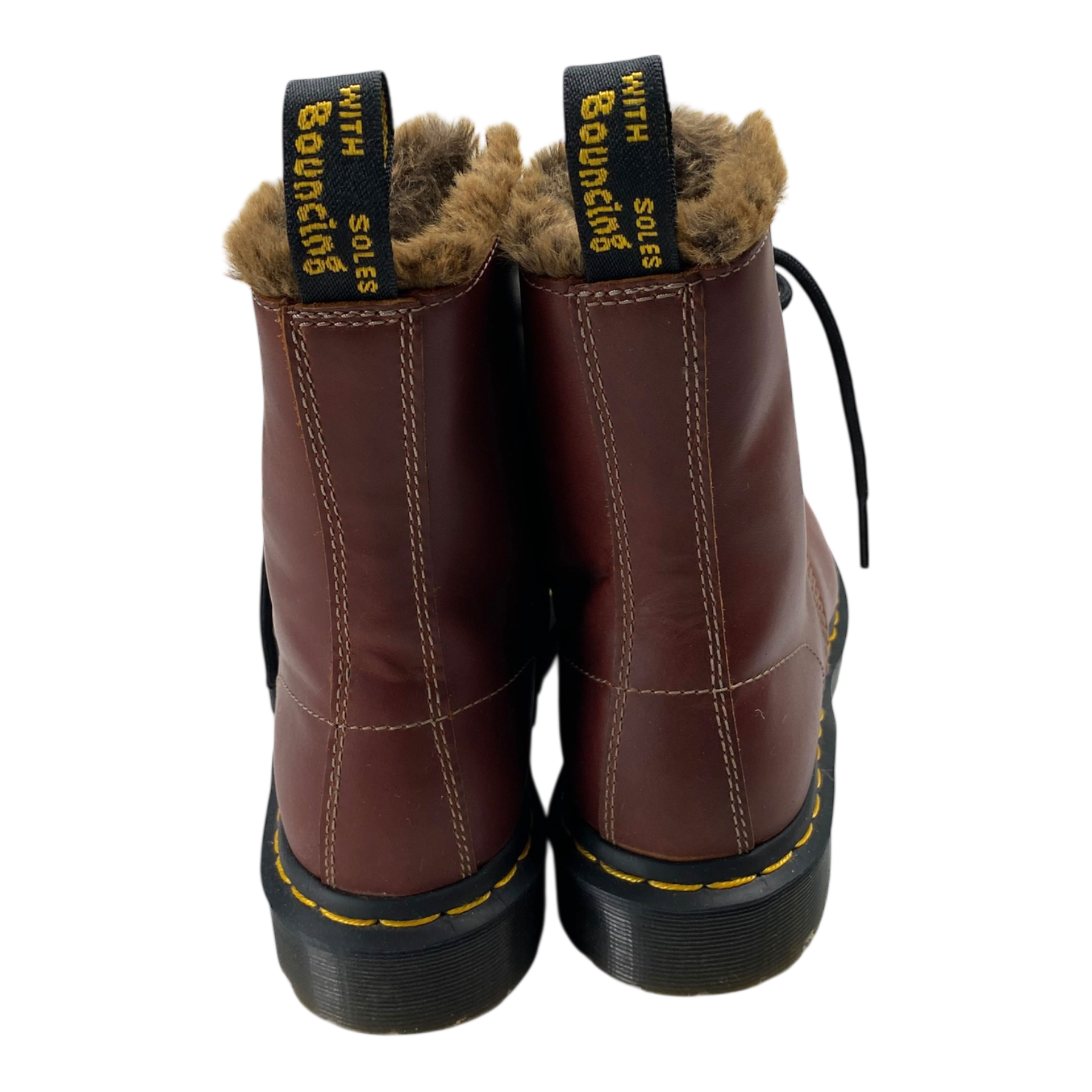 Dr. Martens 1460 Serena collar boots with a faux fur lining. This item is other wise in very good condition but there is one stain at the front.