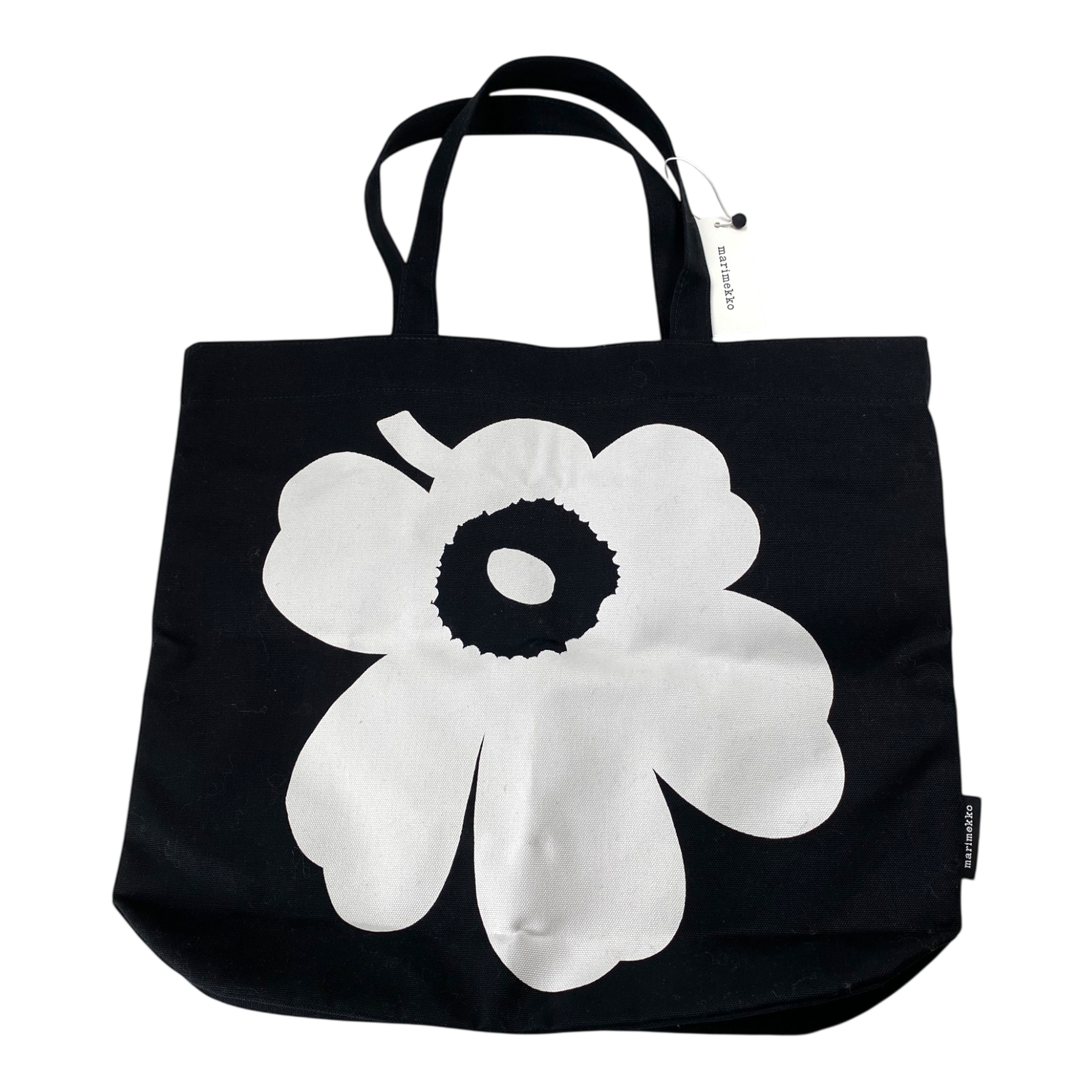 Marimekko Torna canvas shopper bag with unikko graphic on front. One open pocket inside the bag.