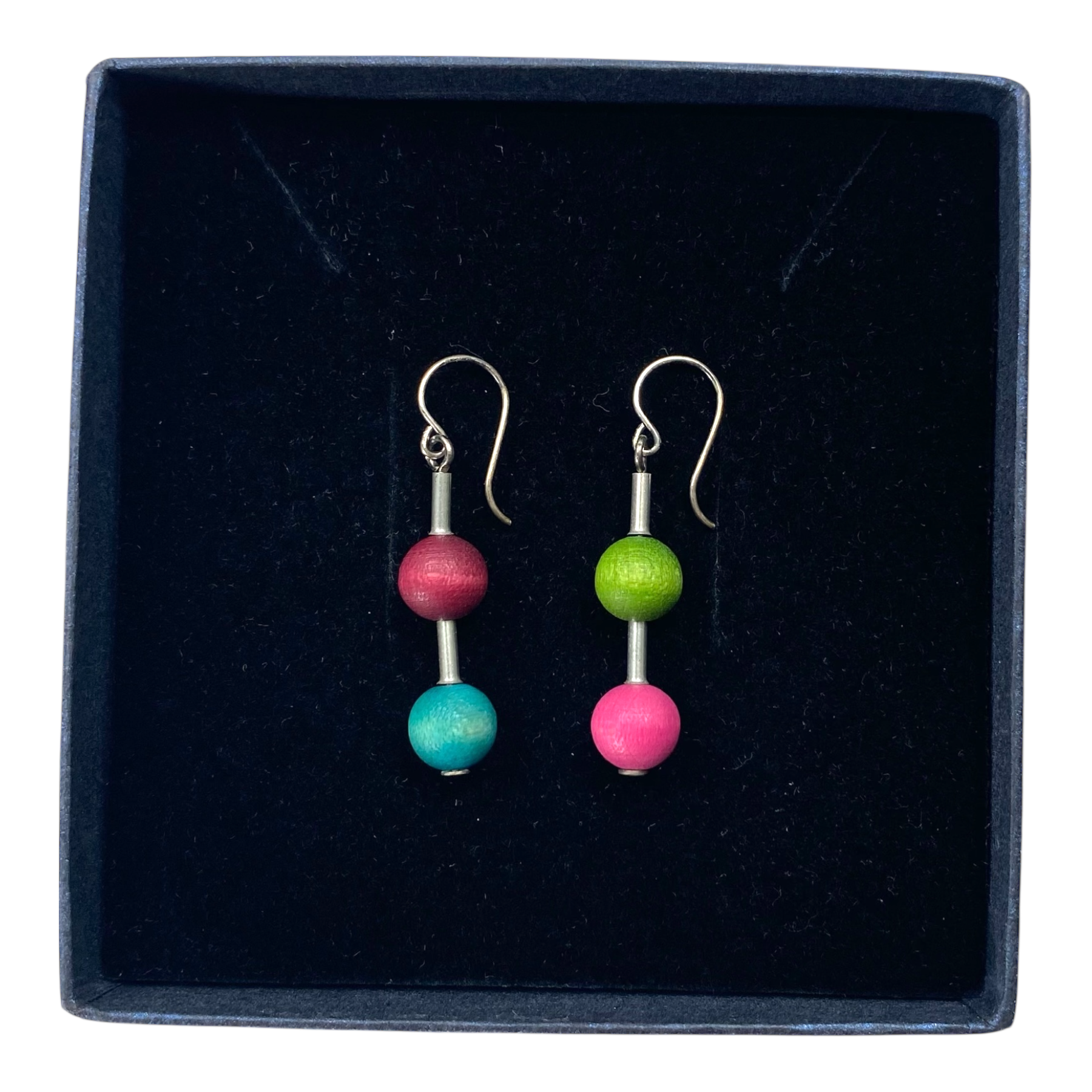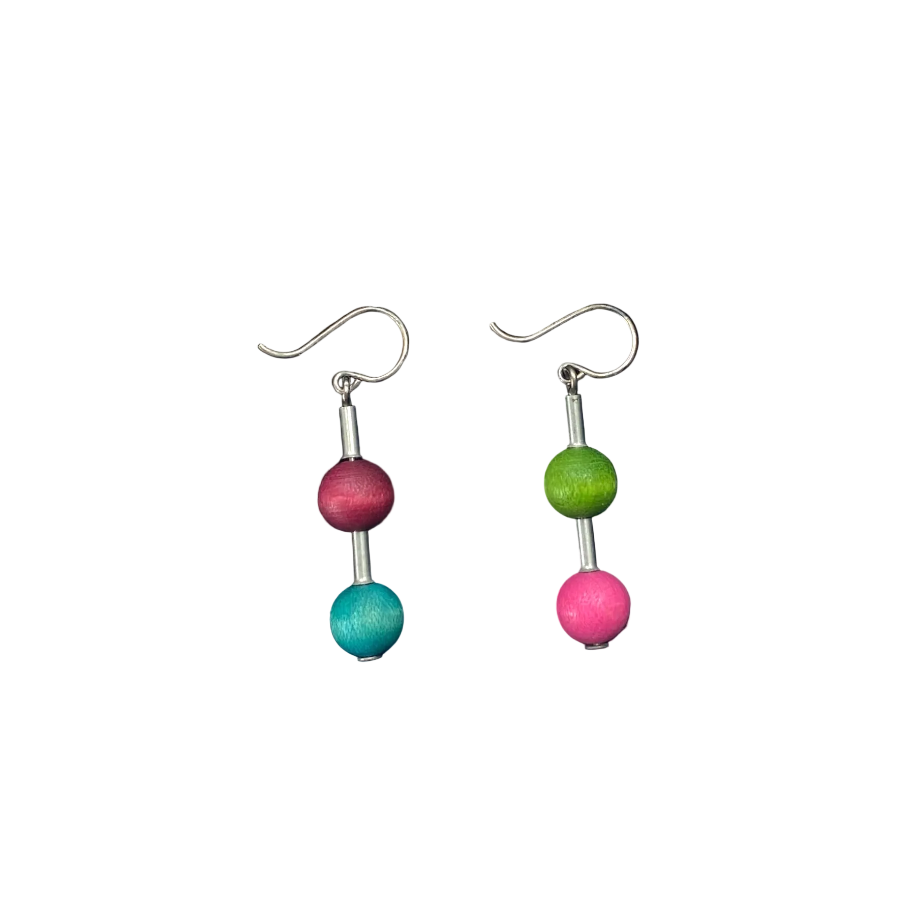 Aarikka earrings. Bead parts are made of wood. Hooks are silver and other parts metal. Aarikka jewelry are nickelfree.
