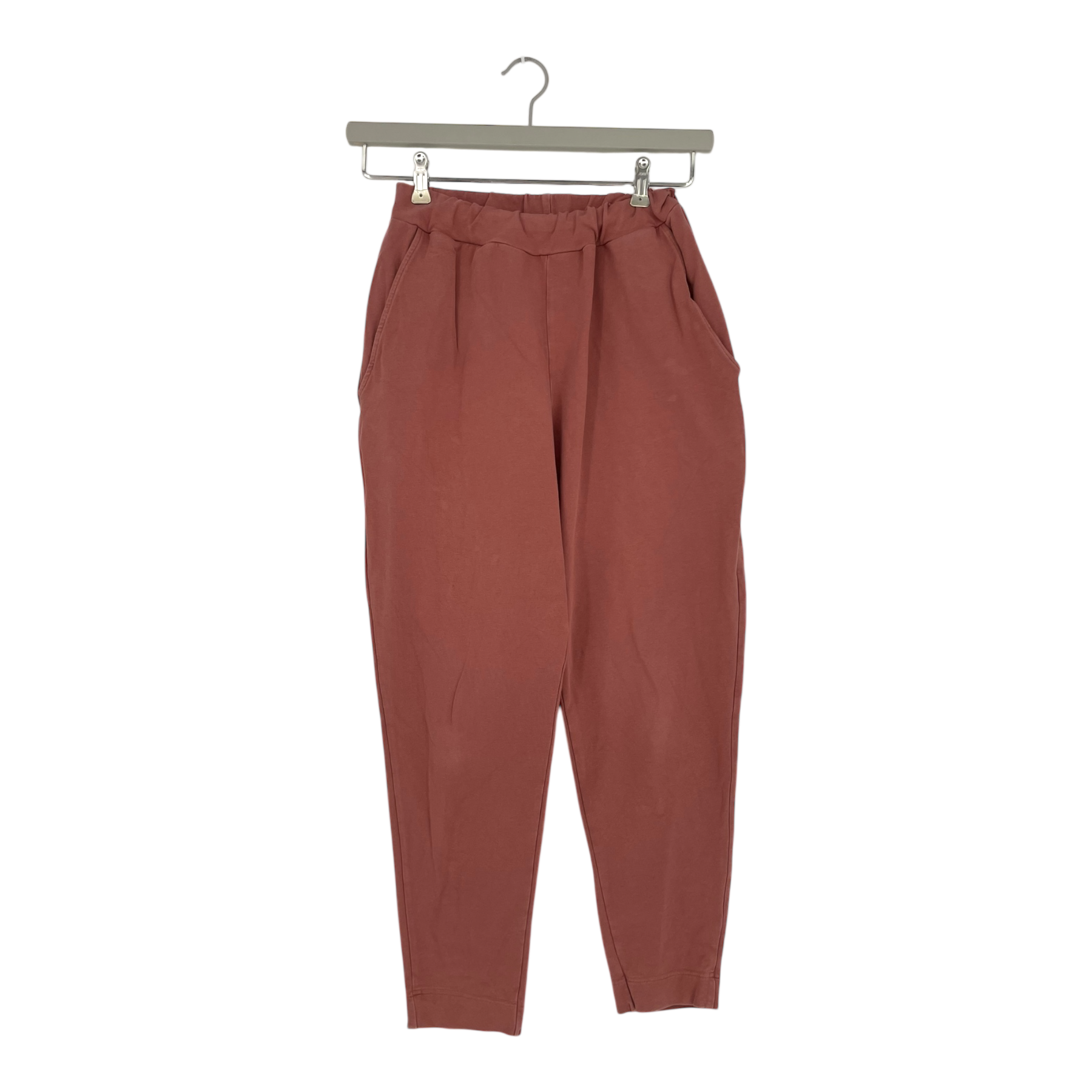 Aarrelabel Carol pants for women with pockets on the sides. Fitting on waist and looser on hip.