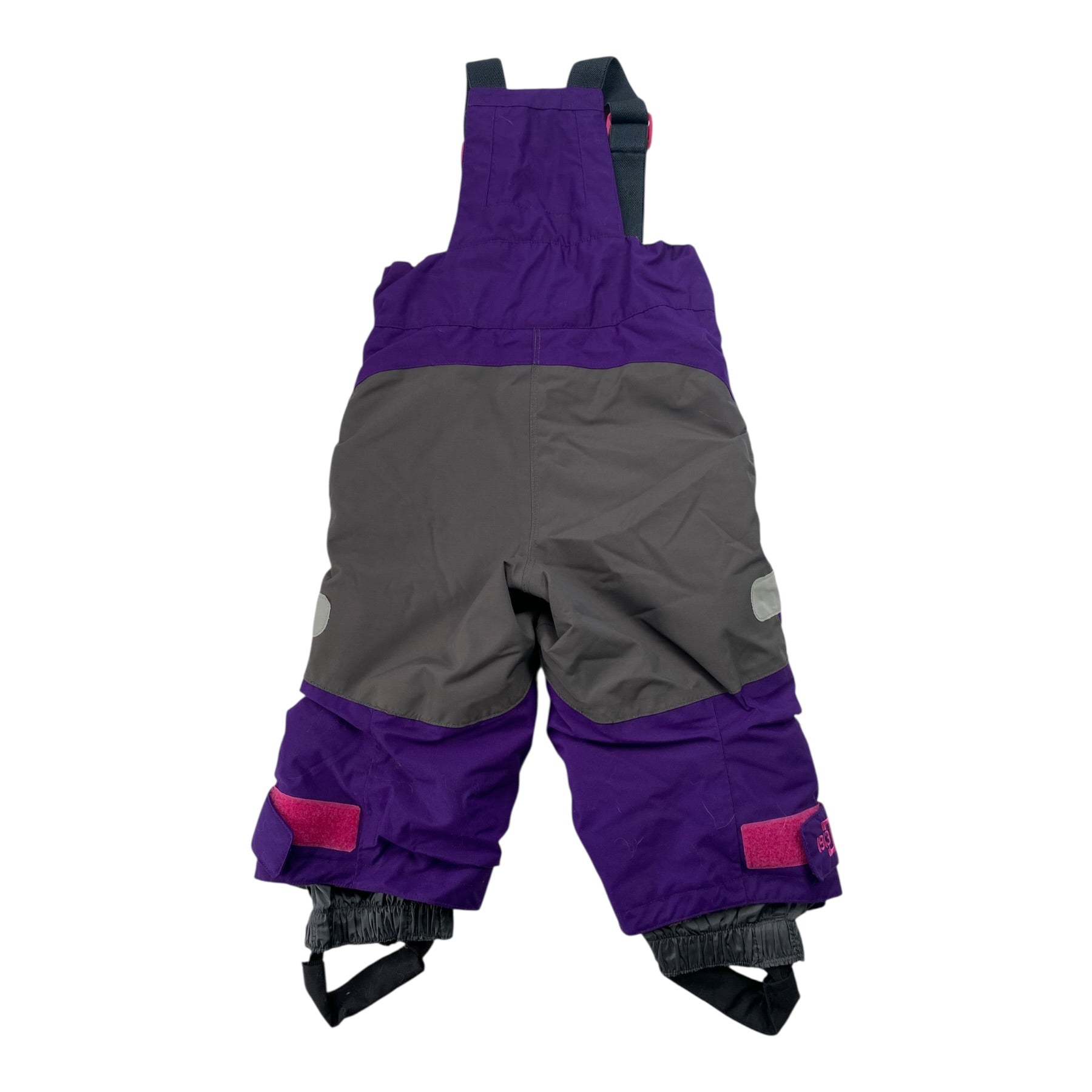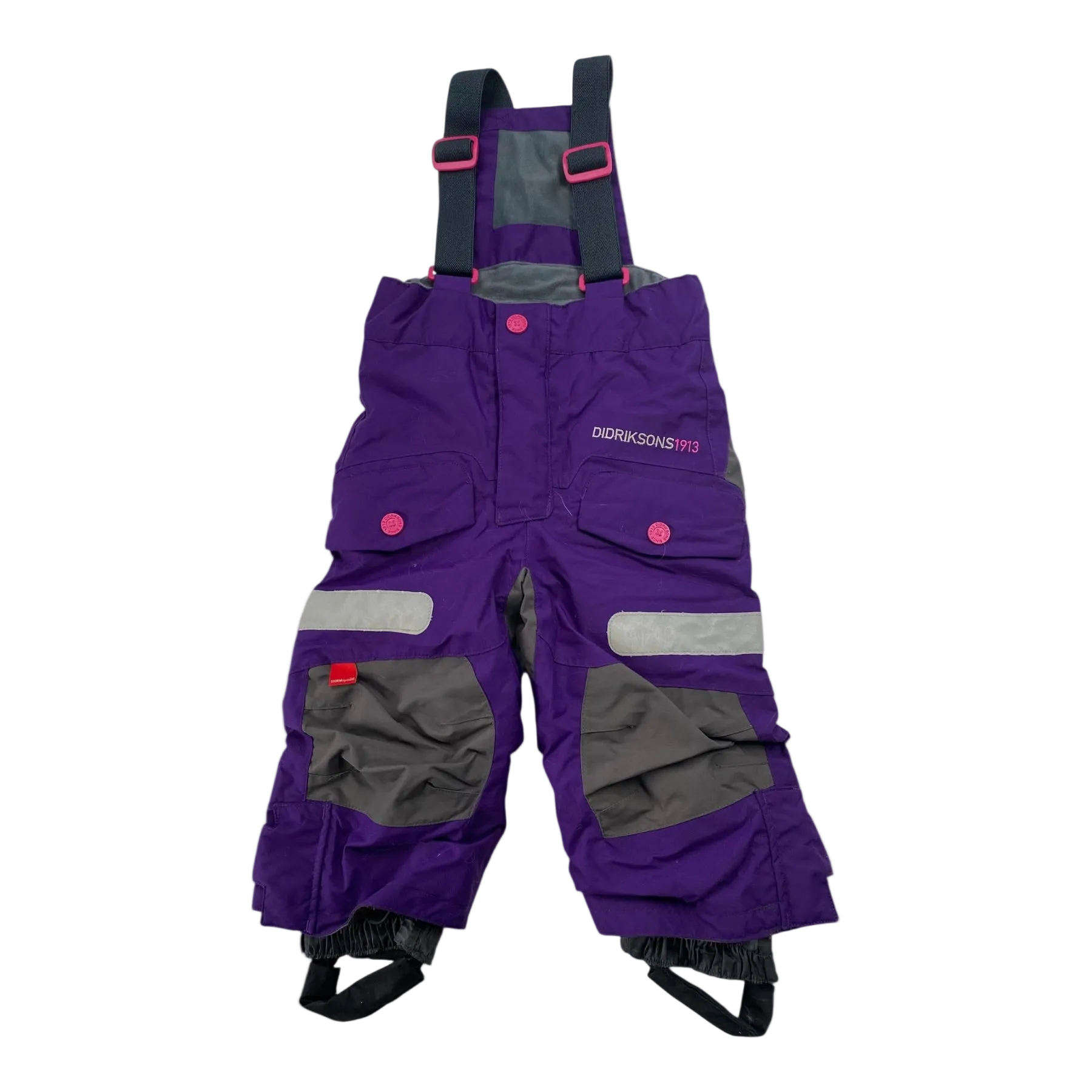 Didriksons kids winter pants with pockets, adjustable and detachable elastic suspenders, elastic waist and snowlocks at leg ends.