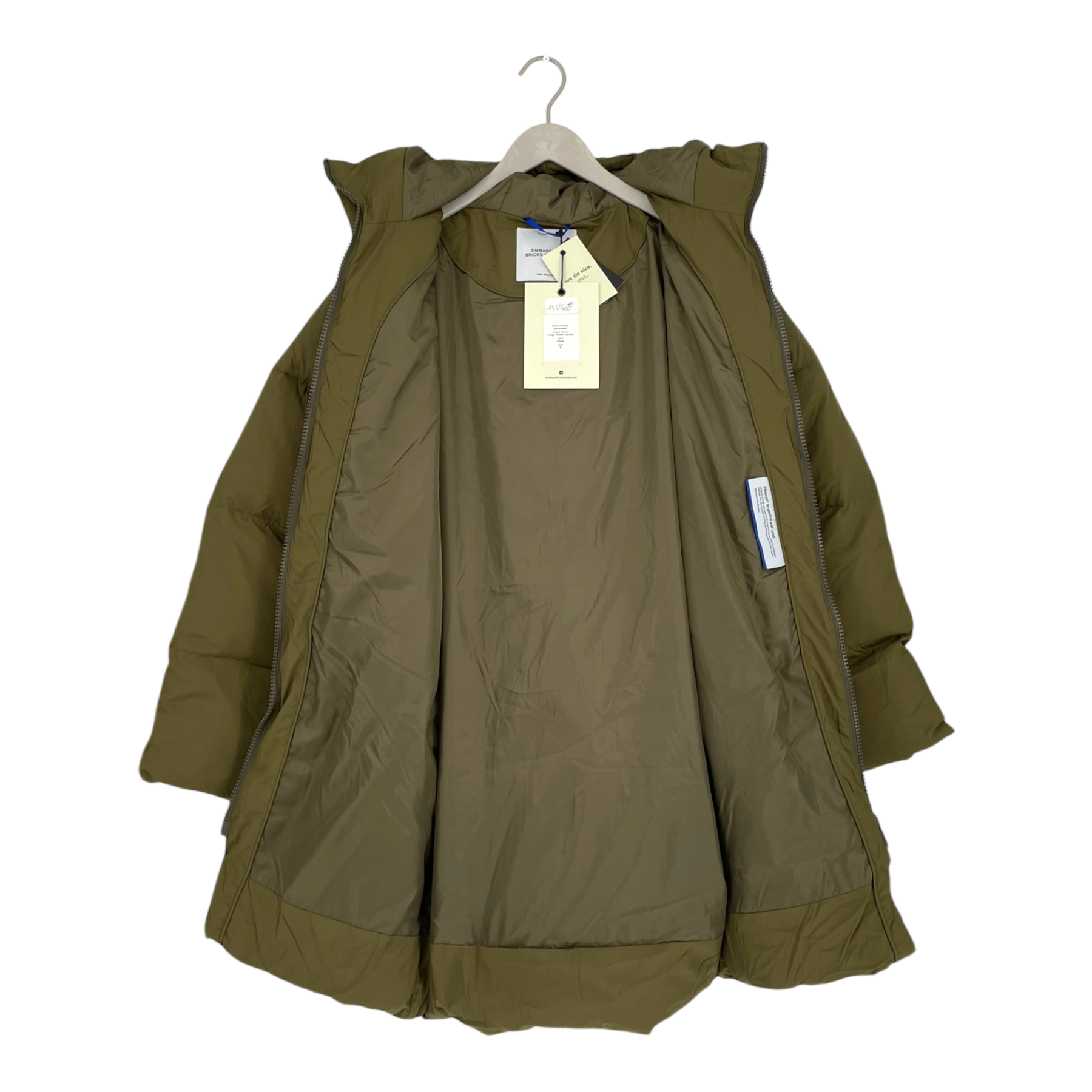 Embassy of Bricks and Logs fargo puffer jacket, olive | unisex S