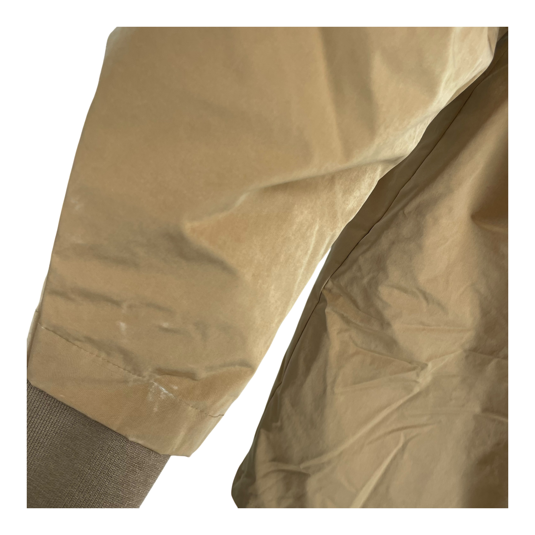 • KRSC, paper look crushed nylon fabric, 5K/5k waterproof/breathable, 46% recycled polyester, 34% recycled nylon, 20% nylon