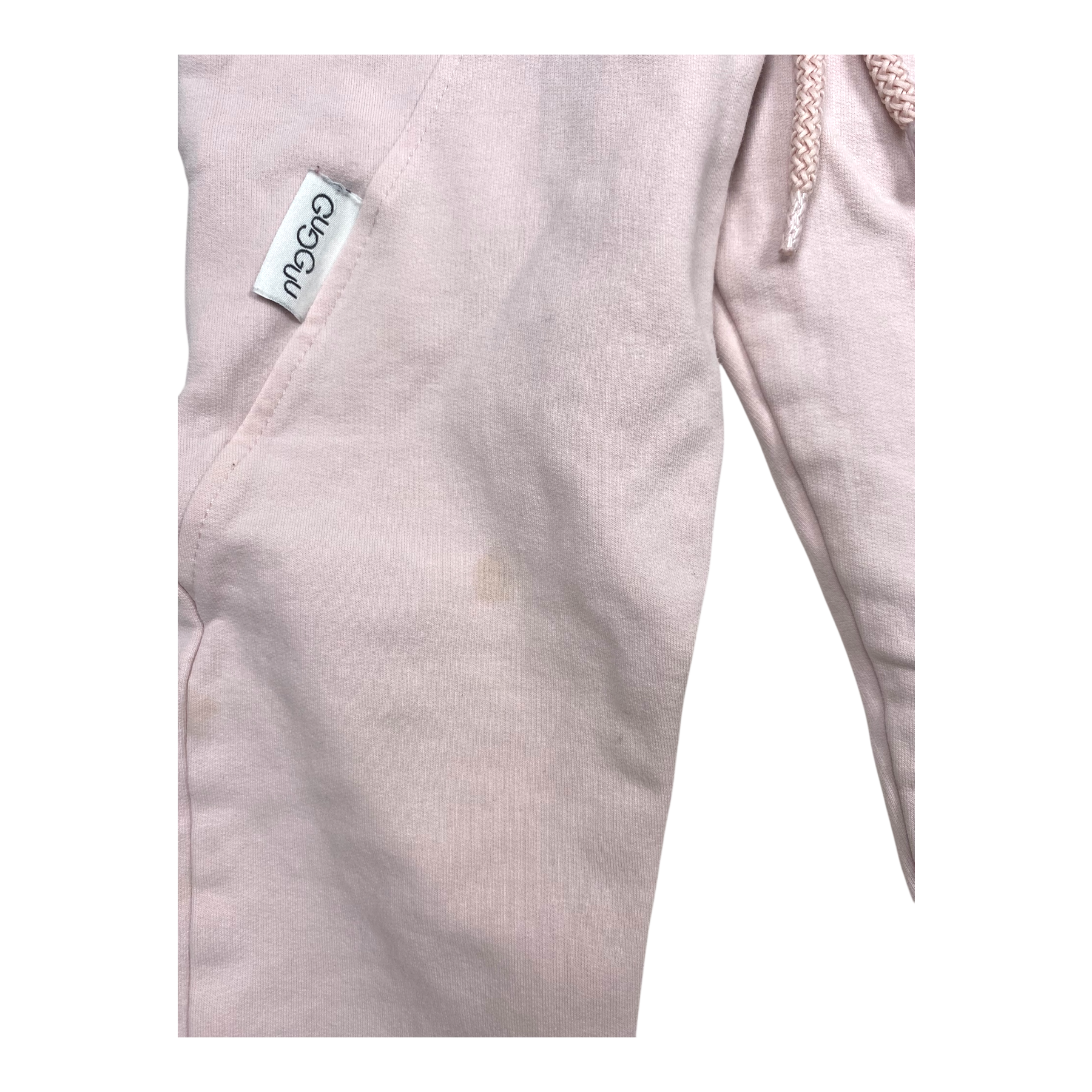 Gugguu sweatpants with an elastic waistband and small pockets. The item has stains.