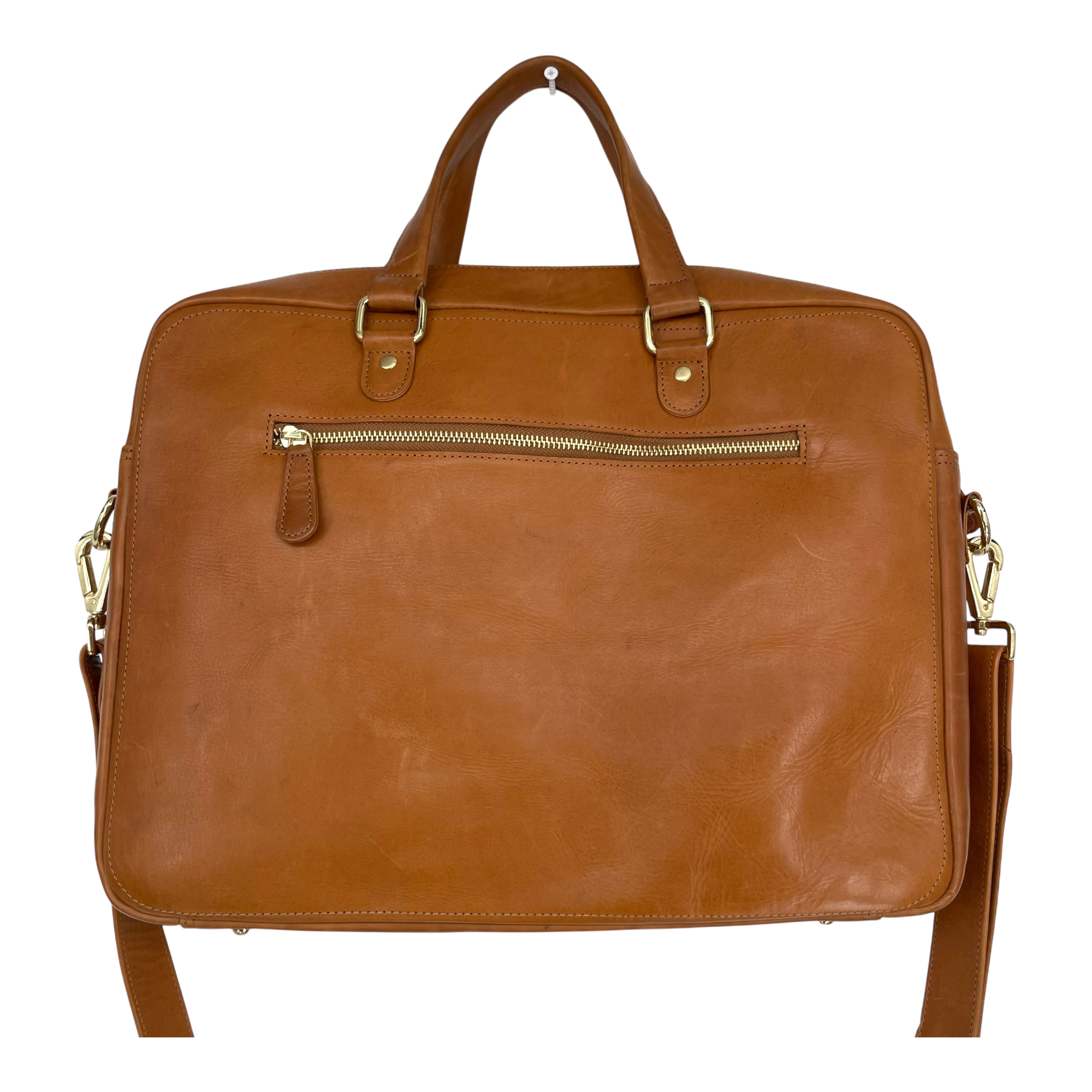 Holzrichter Berlin leather briefcase is a timeless and elegant accessory crafted for professionals. Designed with a spacious interior and durable structure, it offers secure storage for documents, laptops, and daily essentials. The full zip closure ensures added protection, while the detachable and adjustable leather strap allows it to be worn comfortably as a shoulder or crossbody bag. The backside has an outer pocket with zipper closure for easier access to store valuables.