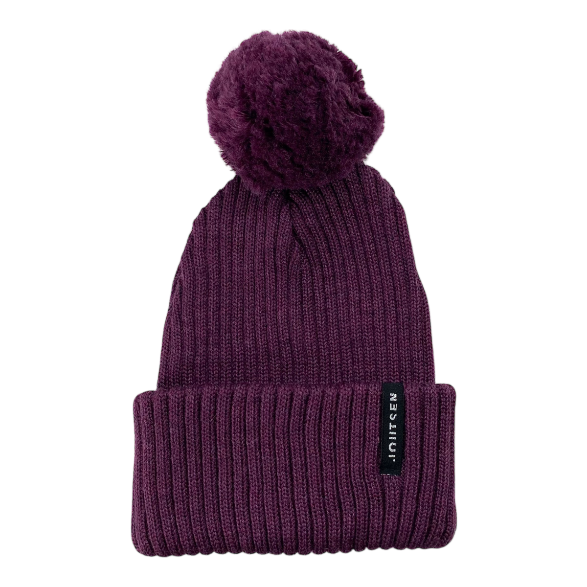 The Ilves wool beanie is made in Finland from mulesing-free merino wool. The beanie has a generous, comfortably warm double fold, a Joutsen logo badge, and a big pom.