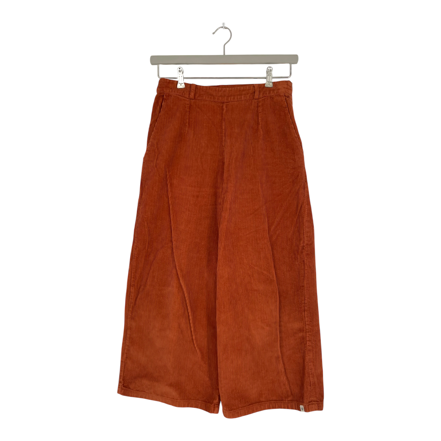 Kaiko's corduroy culottes pants with belt loops and front pockets. Zipper and button closure on the side for ease of dressing.