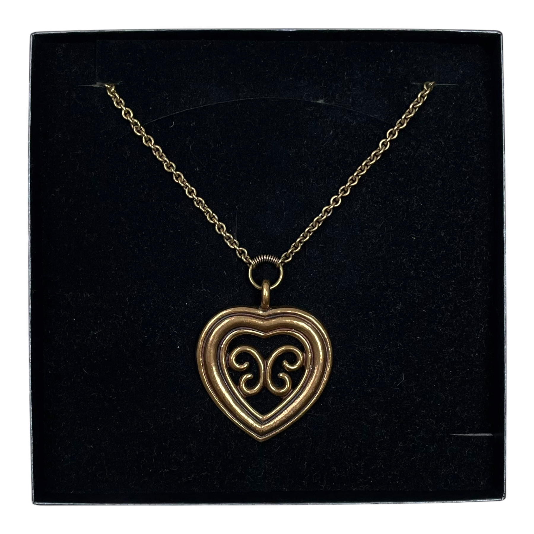 Kalevala Koru bronze Utajärven sydän necklace. The length of the chain is 70cm. Size of the pendant 5 cm x 5 cm. The color on the second picture is correct.
