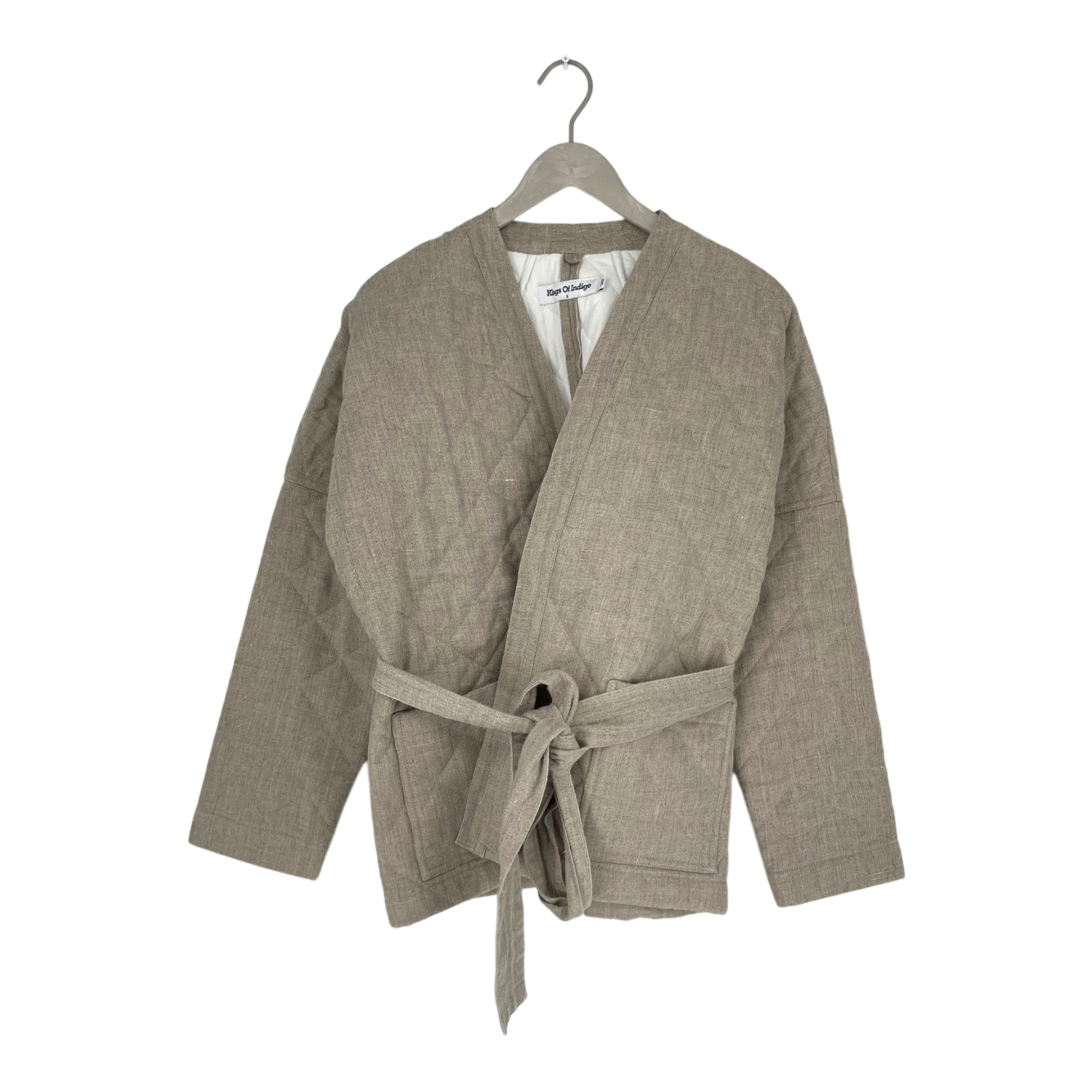 Kings of Indigo women´s kimono style Ophelia hemp jacket with removable fabric belt. The Ophelia jacket is a sturdy and humble showstopper, ideal for both city and country life.