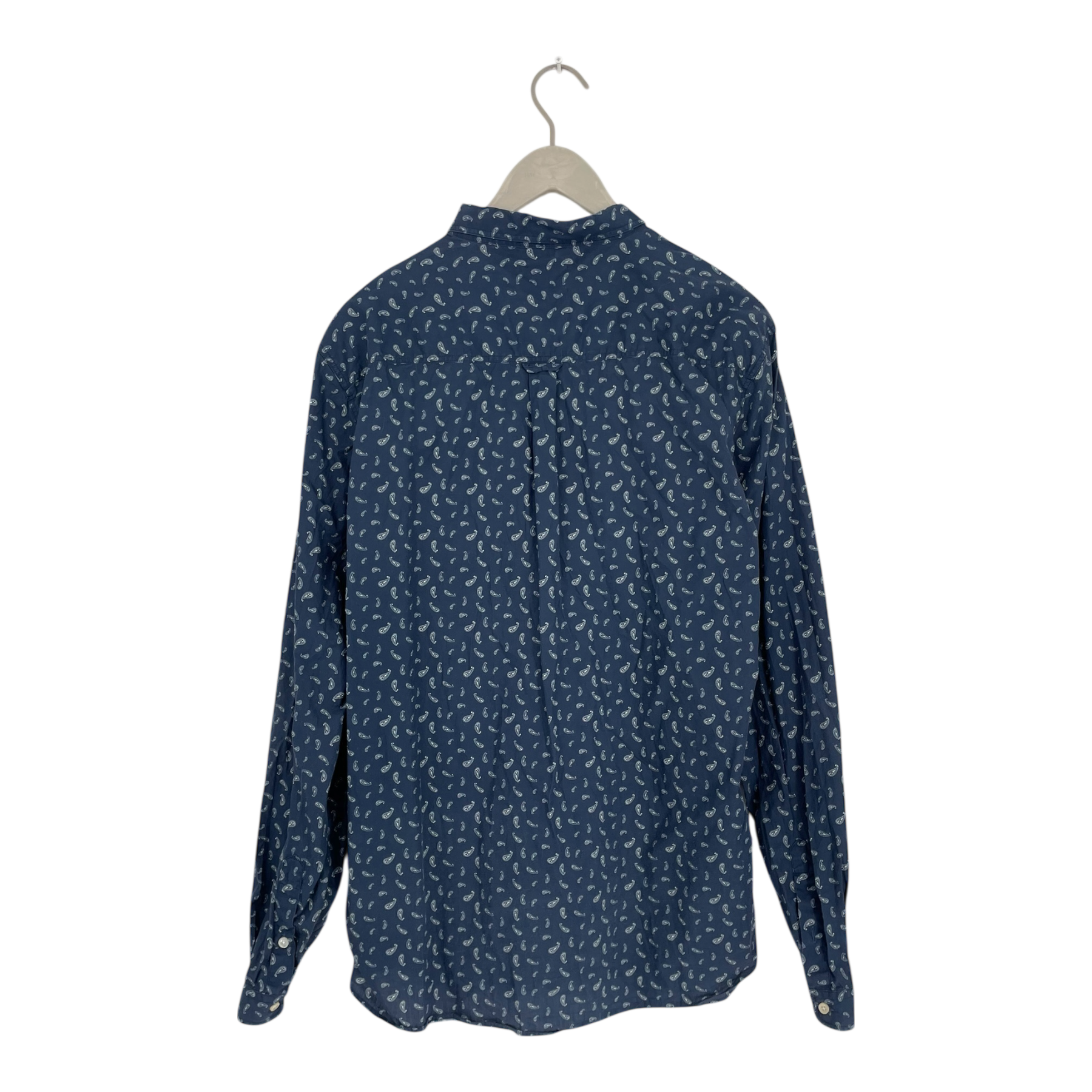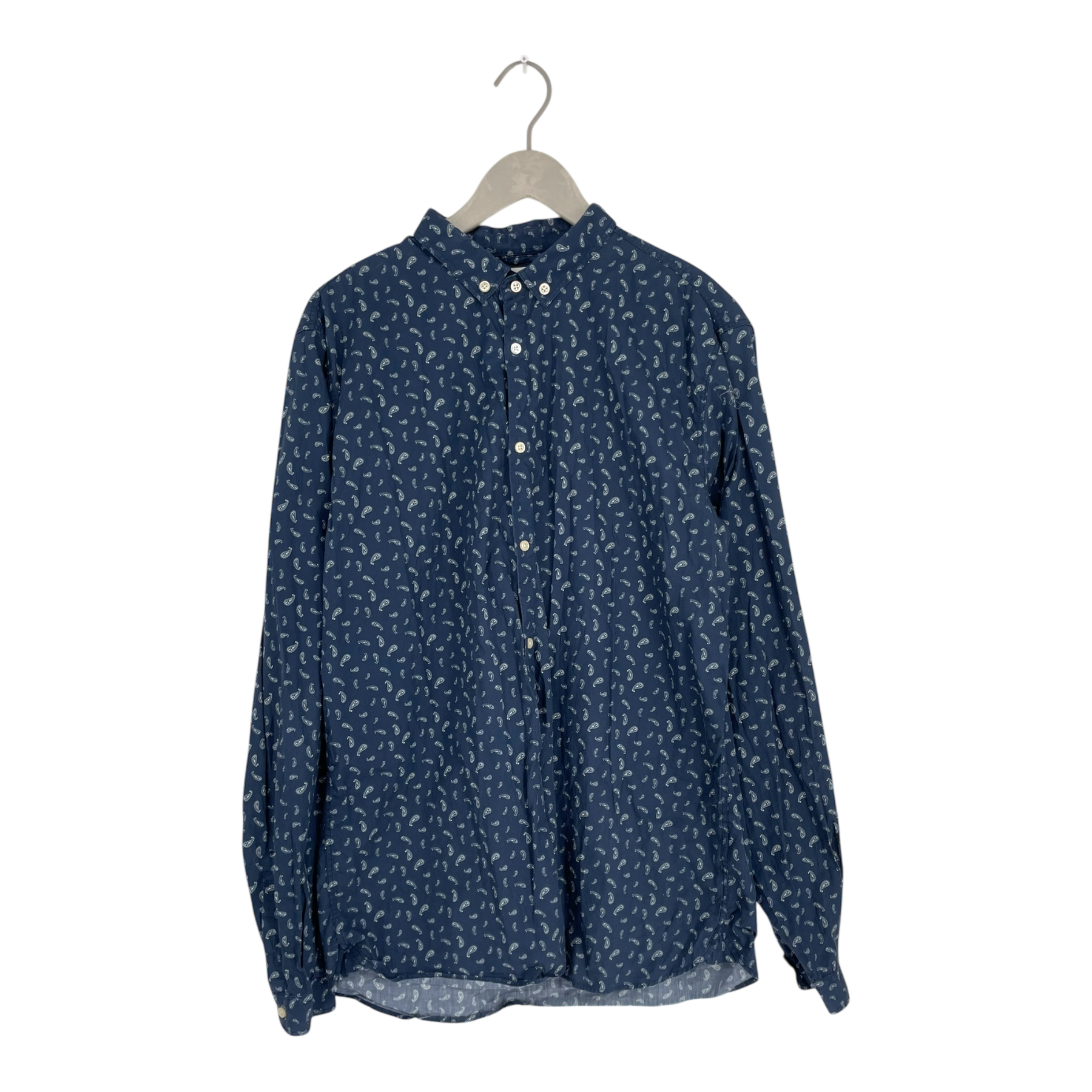 Knowledge Cotton men's long sleeved shirt with a collar, buttons in the front and on the sleeves and a breast pocket. The shirt is very slim fit, so sizing up is recommended.