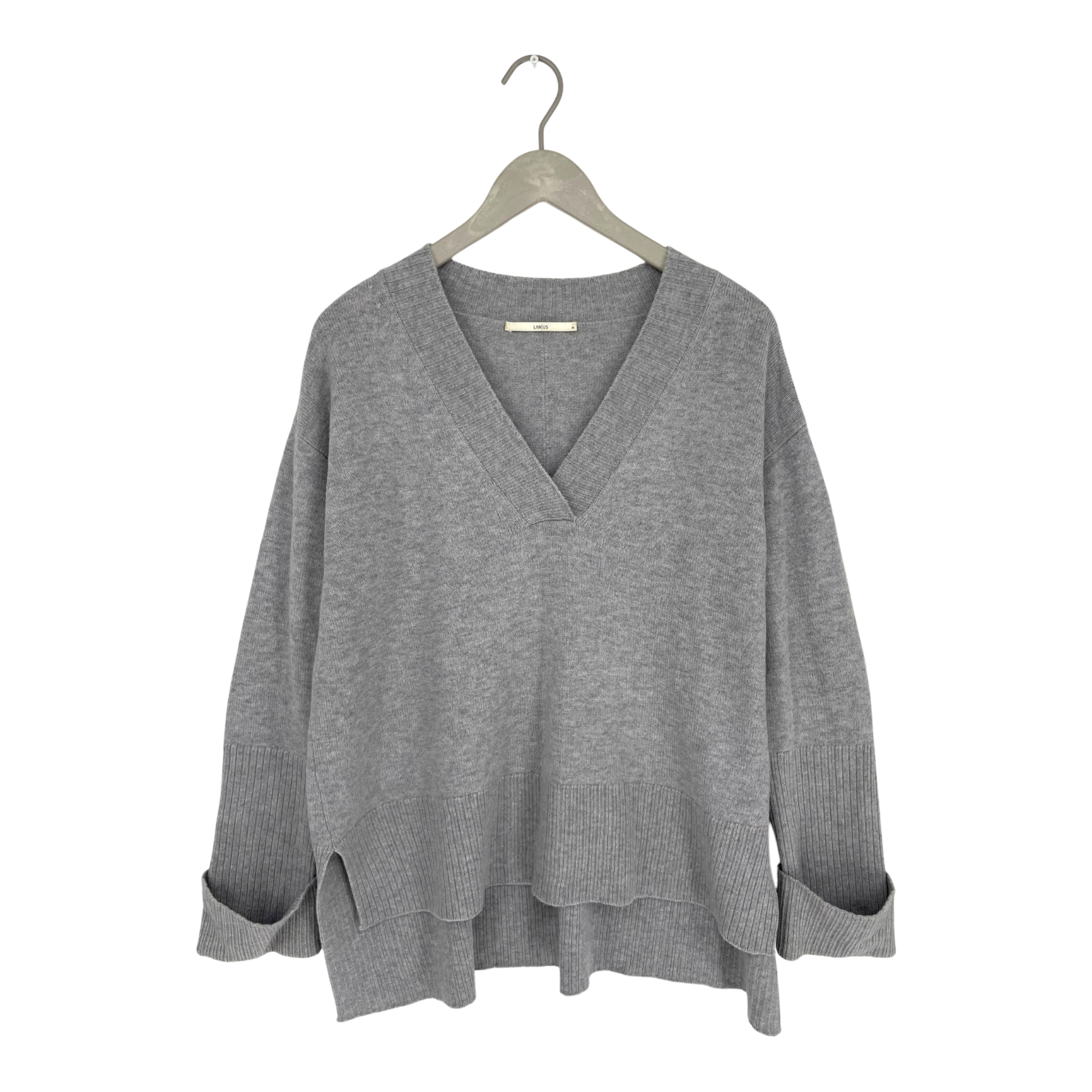 Lanius knitted sweater with V-neck. The hem is longer from the back.