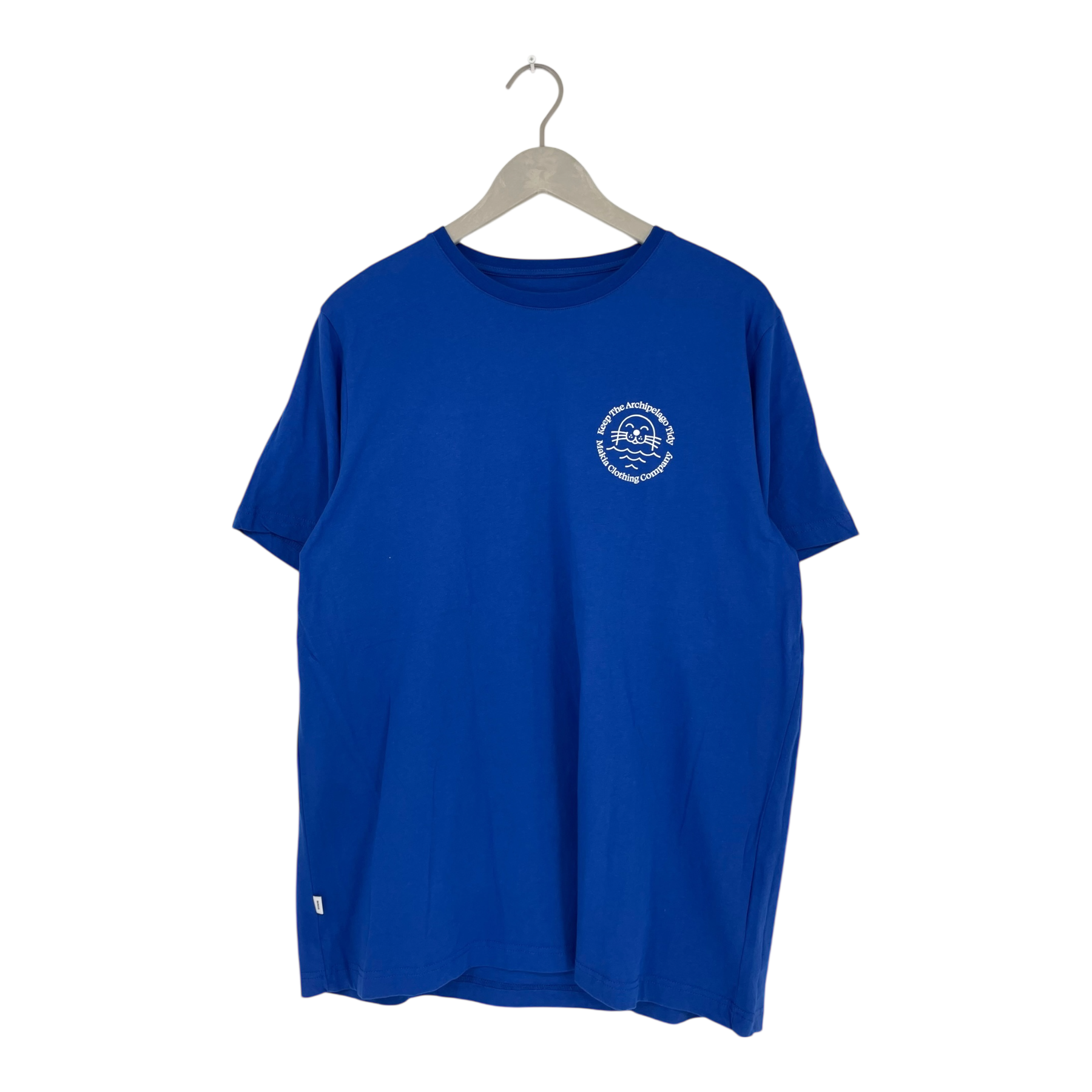 Makia t-shirt with a Keep the Archipelago Tidy logo on the front.