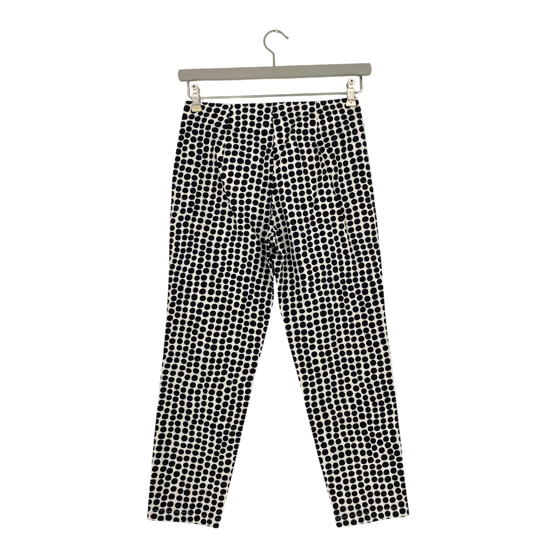 Marimekko "Byysa" pants in black & white dot print. Cropped length. Zipper on the side.