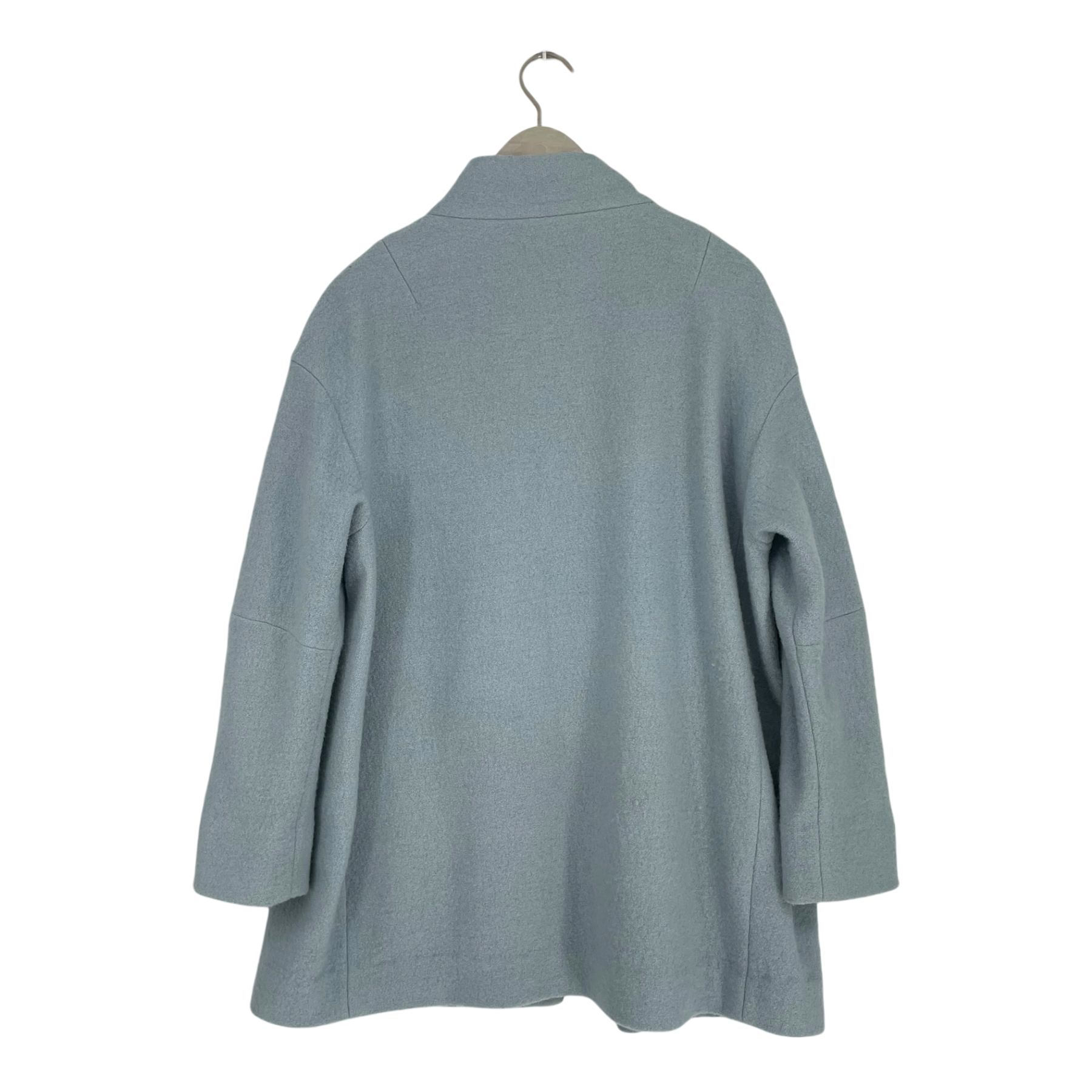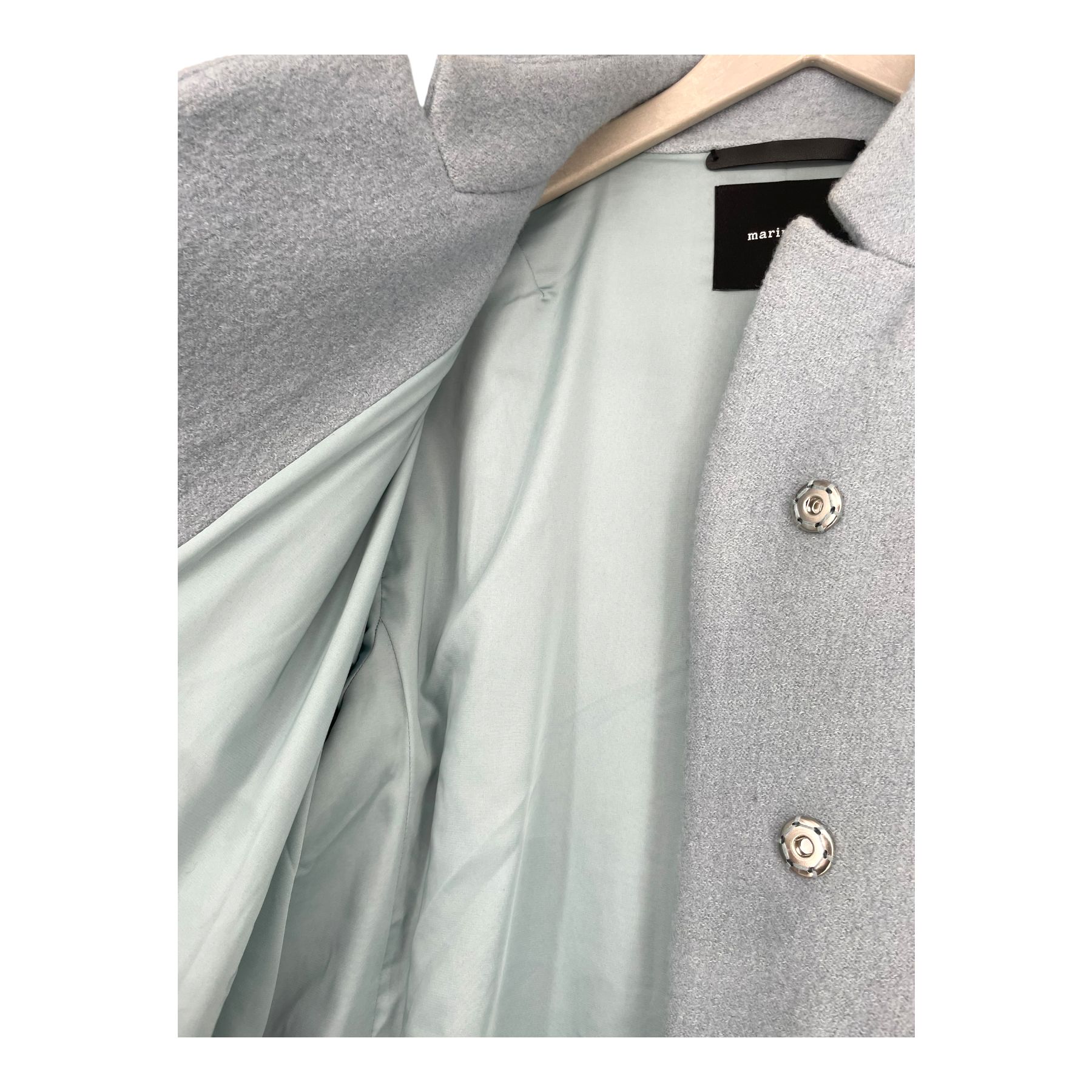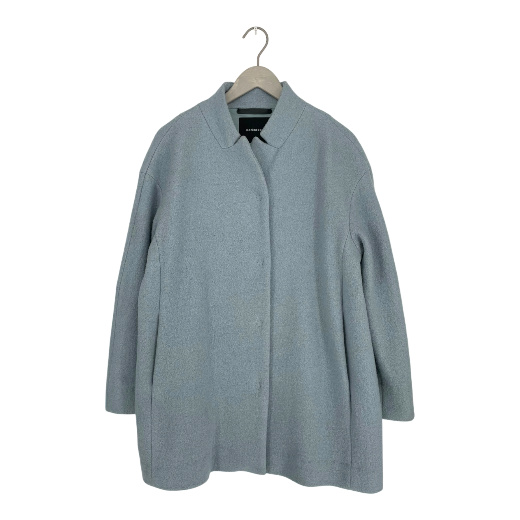 Marimekko Molla coat is made of a boiled wool and cotton mix in black. The Molla jacket has large snap buttons, a raised collar and a hip-length hem. The sleeves are loose and dropped at the shoulder and the coat has pockets at the side seams and a stretchy polyester lining.