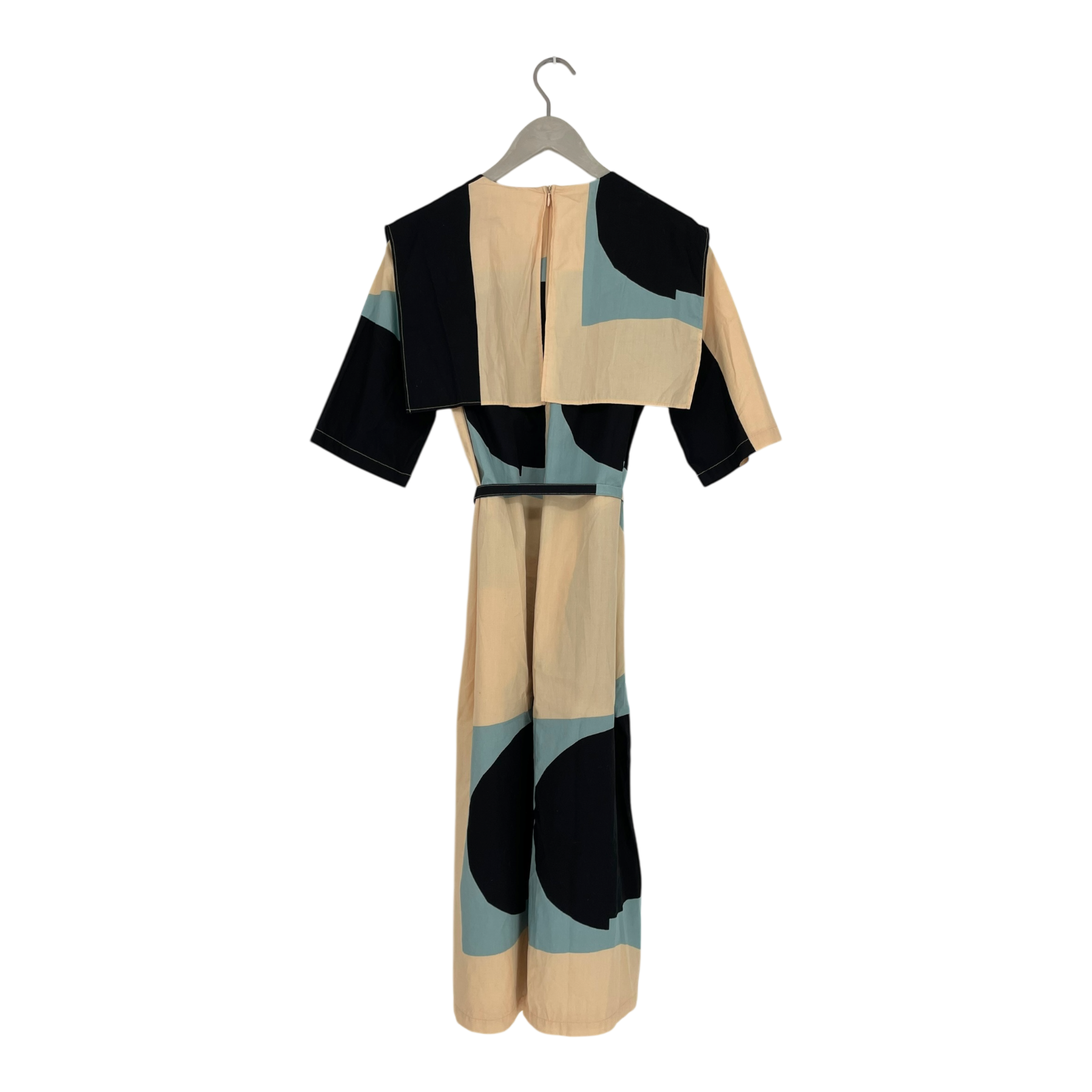 Marimekko Nelikulmio dress with wide square shape sailor collar, half sleeves, hidden zipper, side seam pockets and a detachable fabric belt.