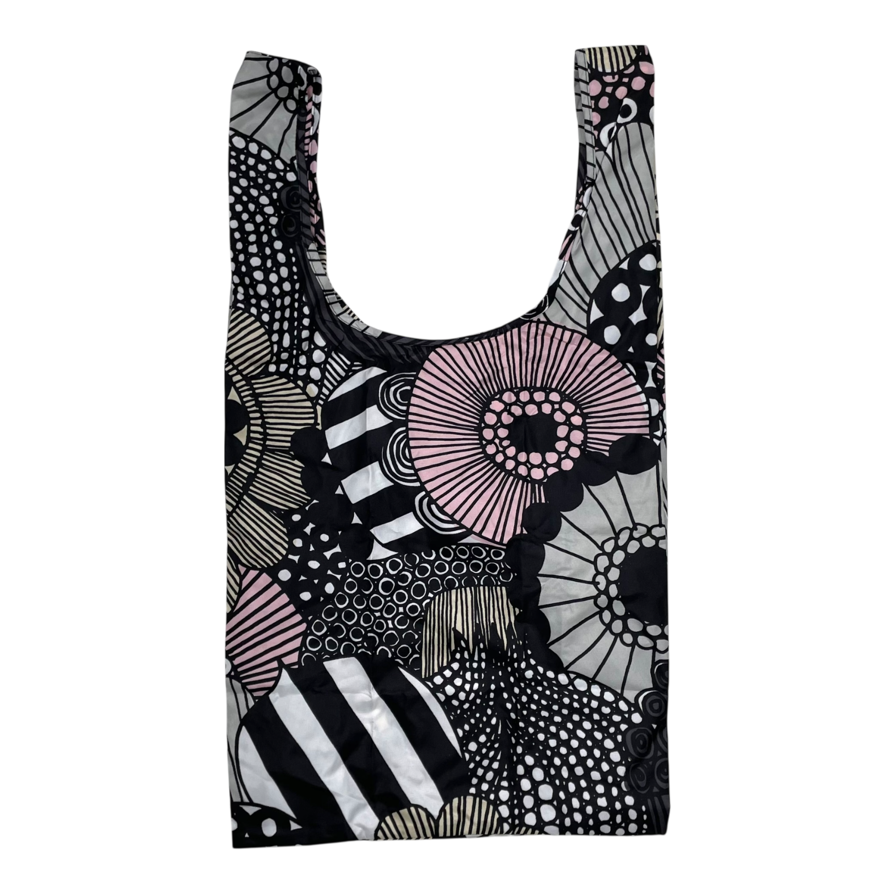 Marimekko foldable shopping tote / bag in siirtolapuutarha print. When not in use, the bag can be folded up and stored in the inside pocket.