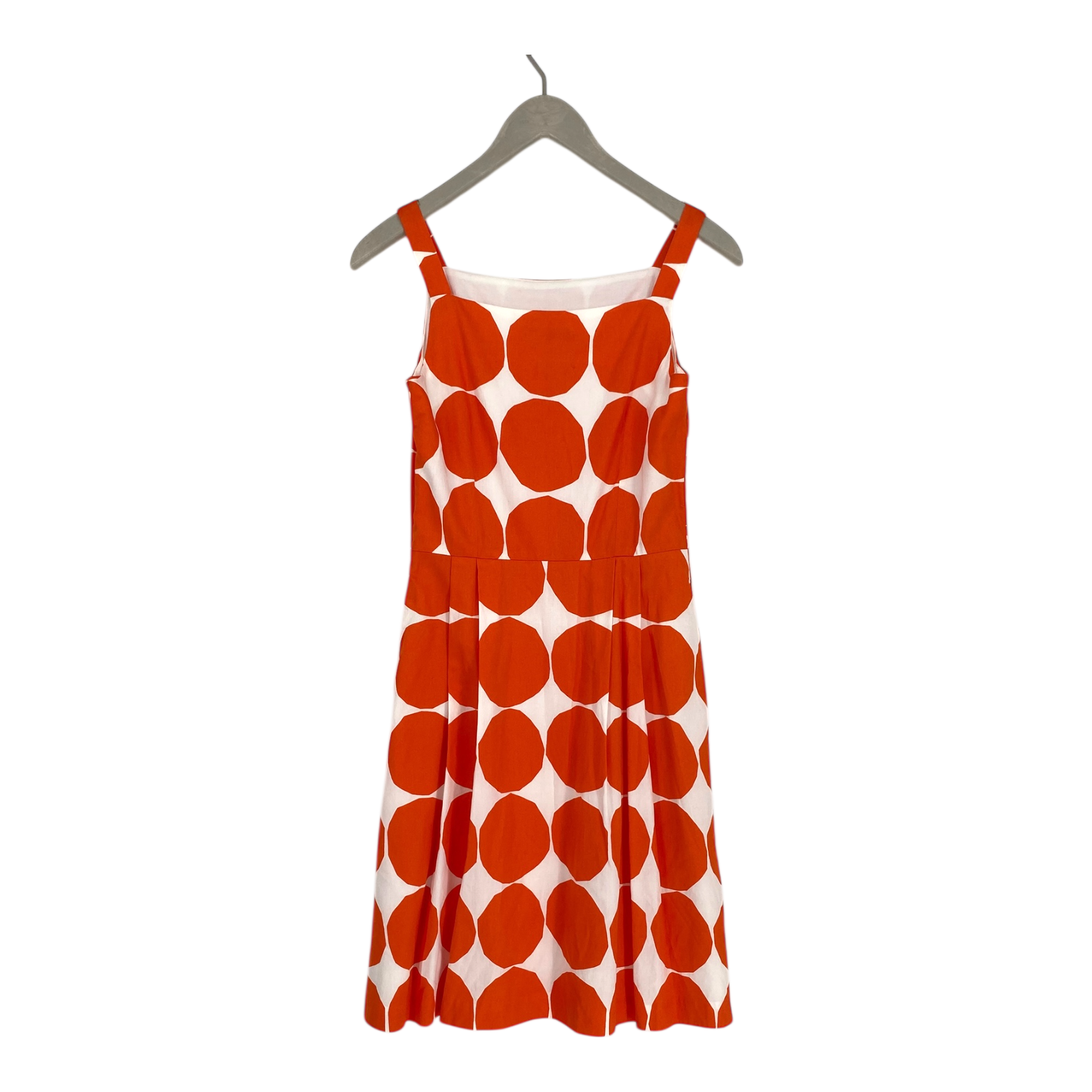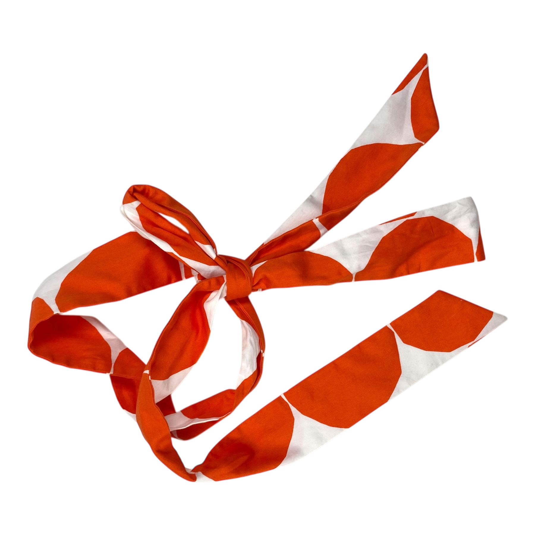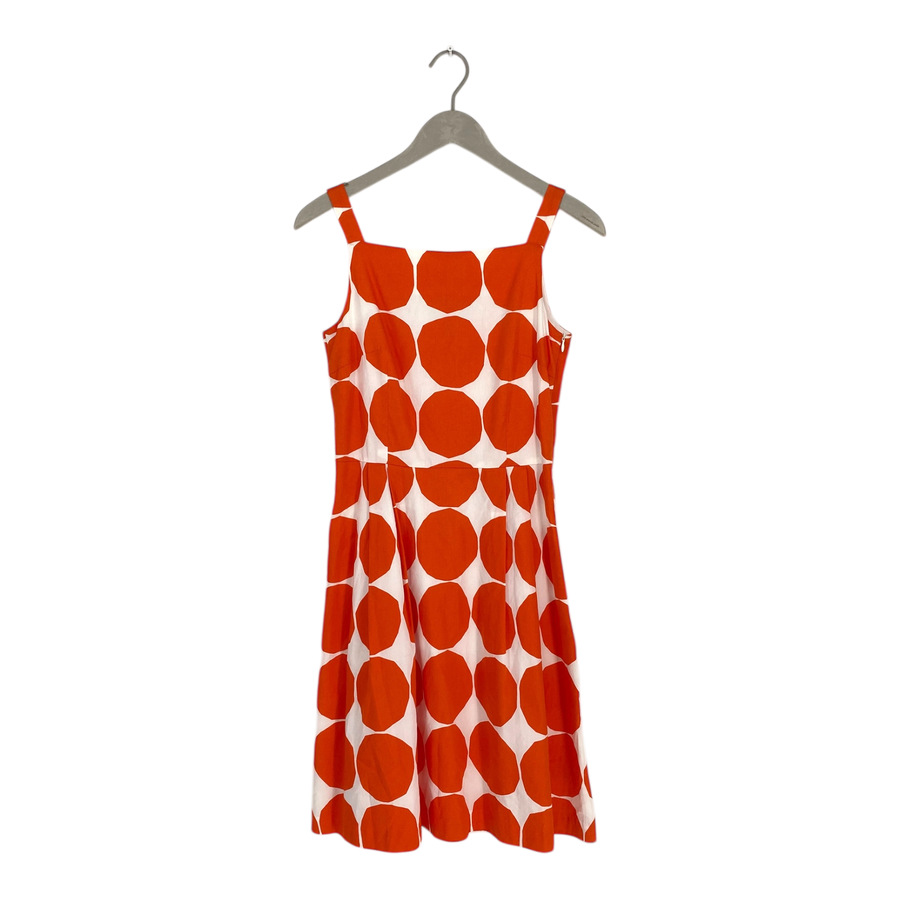 Marimekko sleeveless Steela dress in Kivet print with an adjustable and removable belt. The belt can be worn that the tie is on the back or on the front.