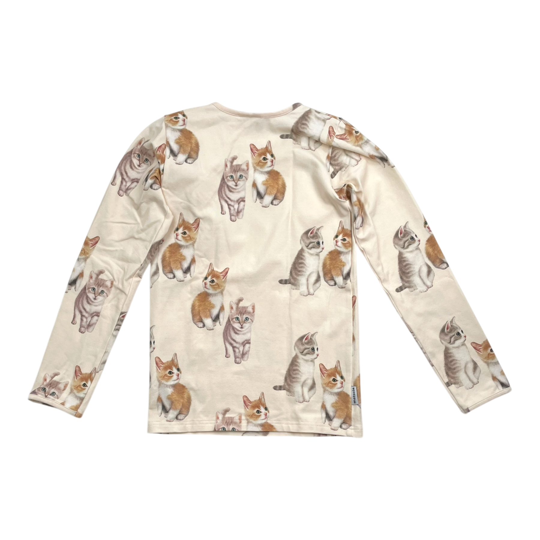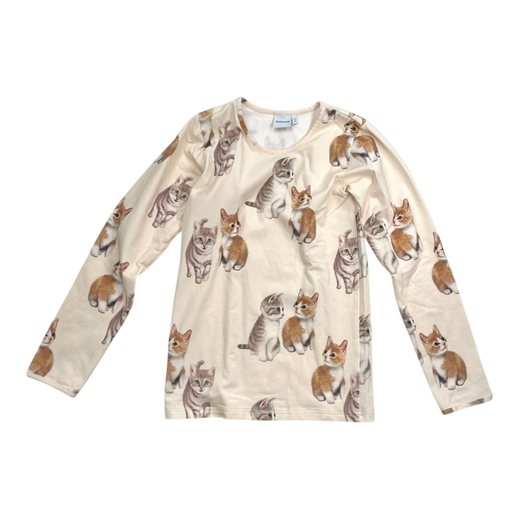 Metsola long sleeve shirt featuring an all-over kitten print on cream background. Round neckline and regular fit with straight hem.