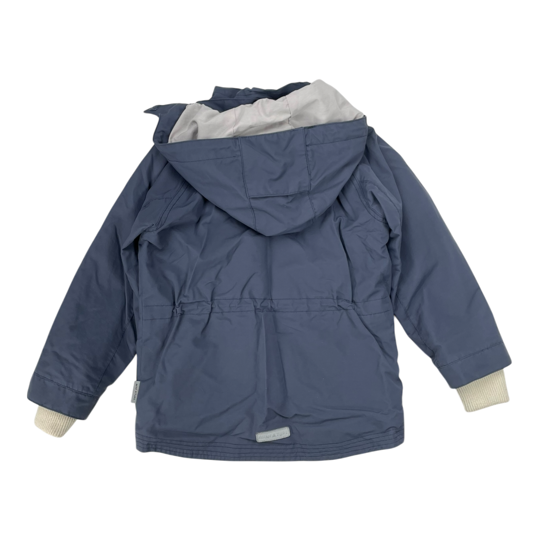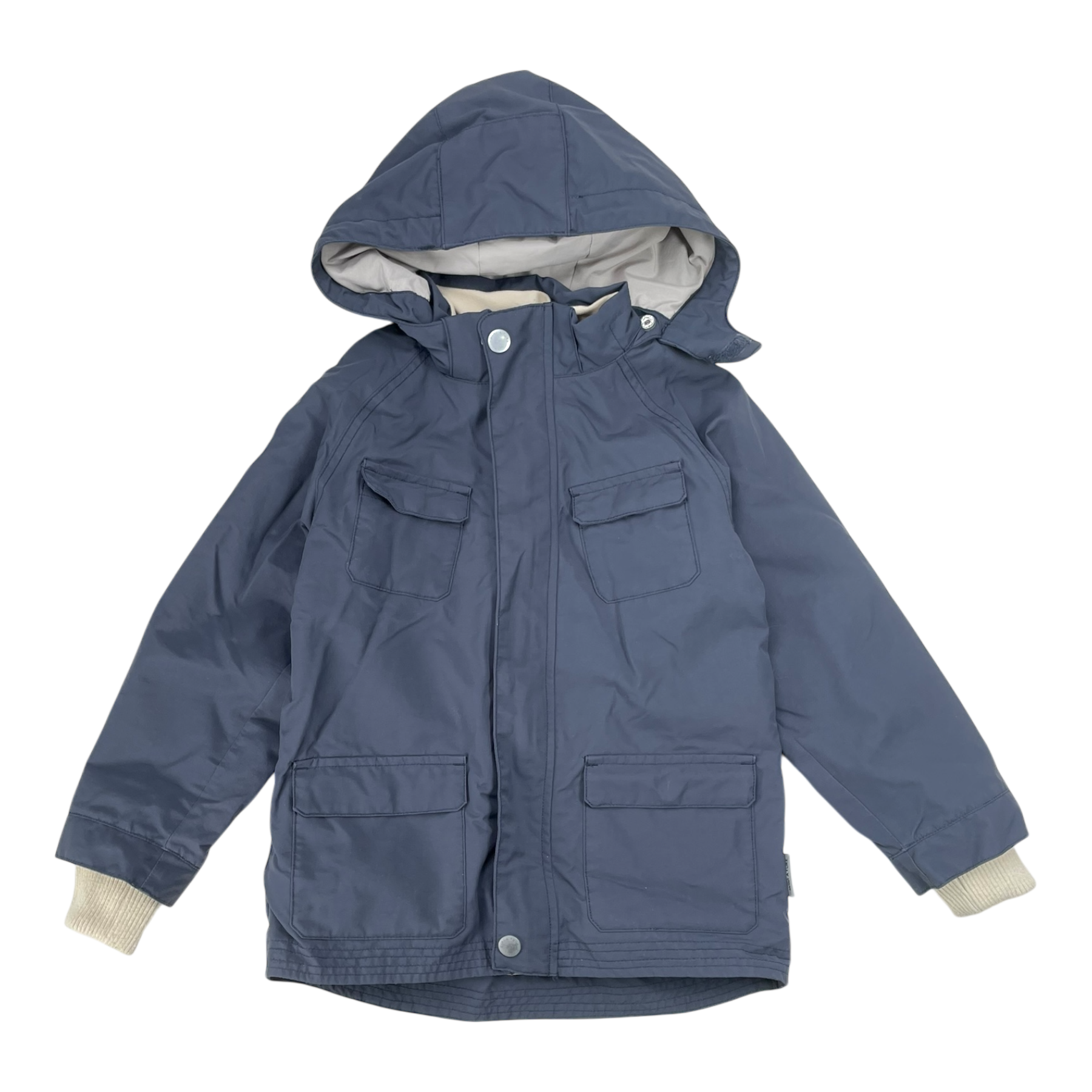 Mini A Ture midseason jacket is a shell jacket with thin lining and a removable hood. There is two front pockets, a reflective logo in the back and zipper closure in the front. The waist can be adjusted for better fit.