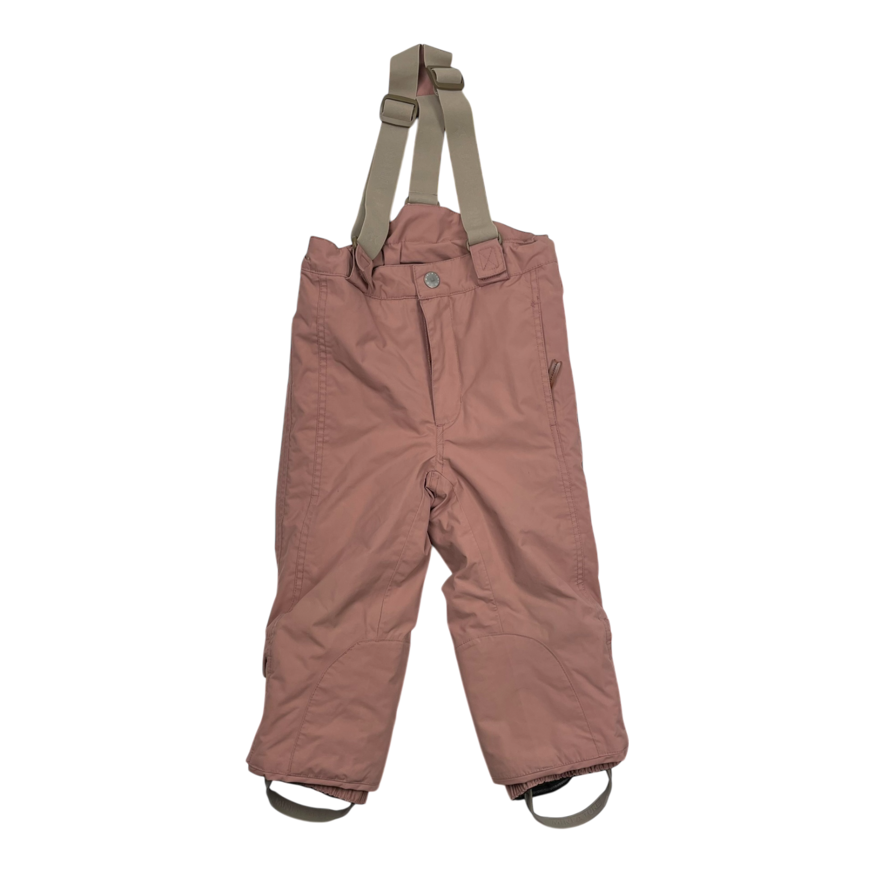 Mini A Ture snow pants are padded outdoor pants with adjustable and removable suspenders. There is a reflective logo in the back, rubber stirrups and the waist can be adjusted. This item has taped seams and insulated fabric.