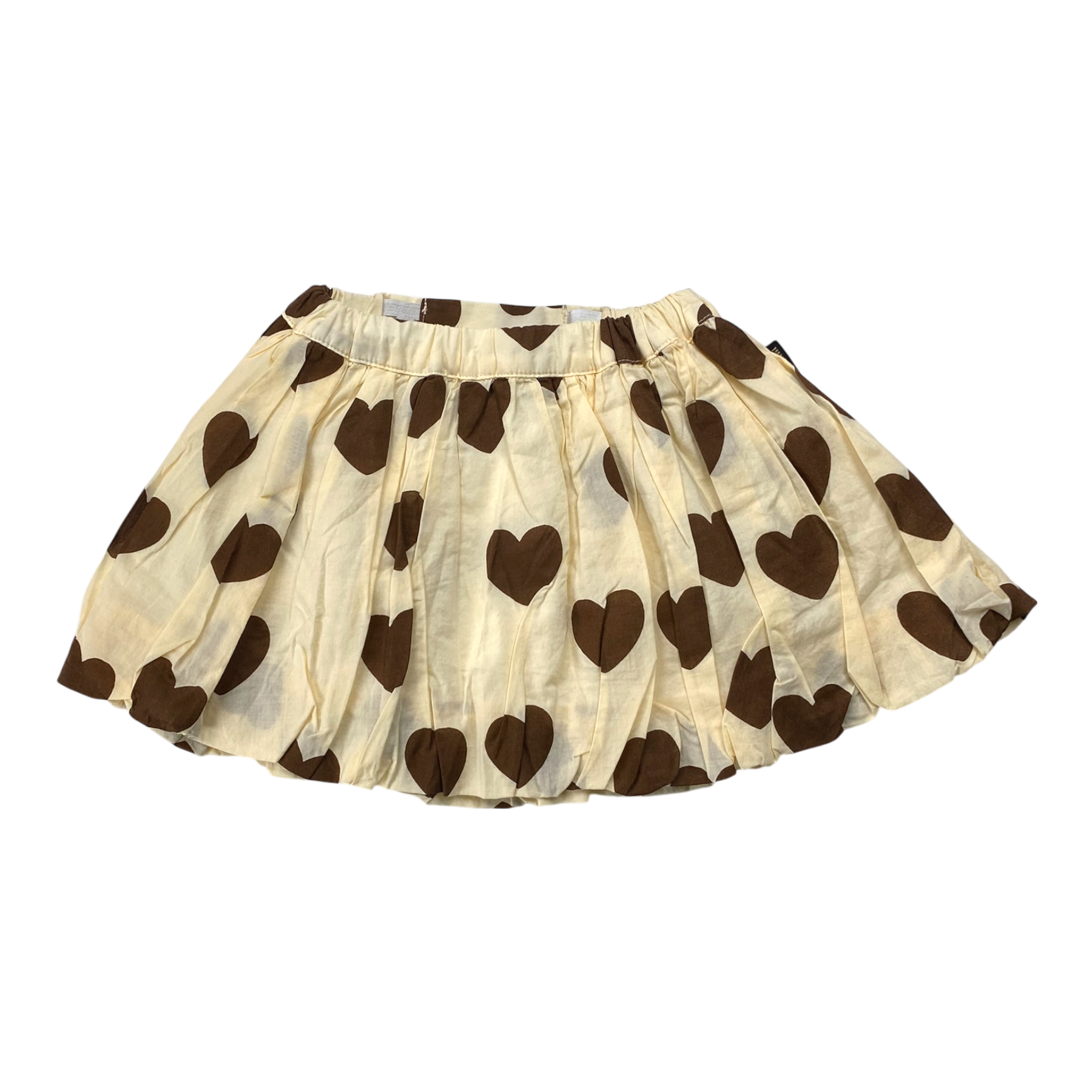 Mini Rodini woven cotton skirt in hearts print with adjustable waist.