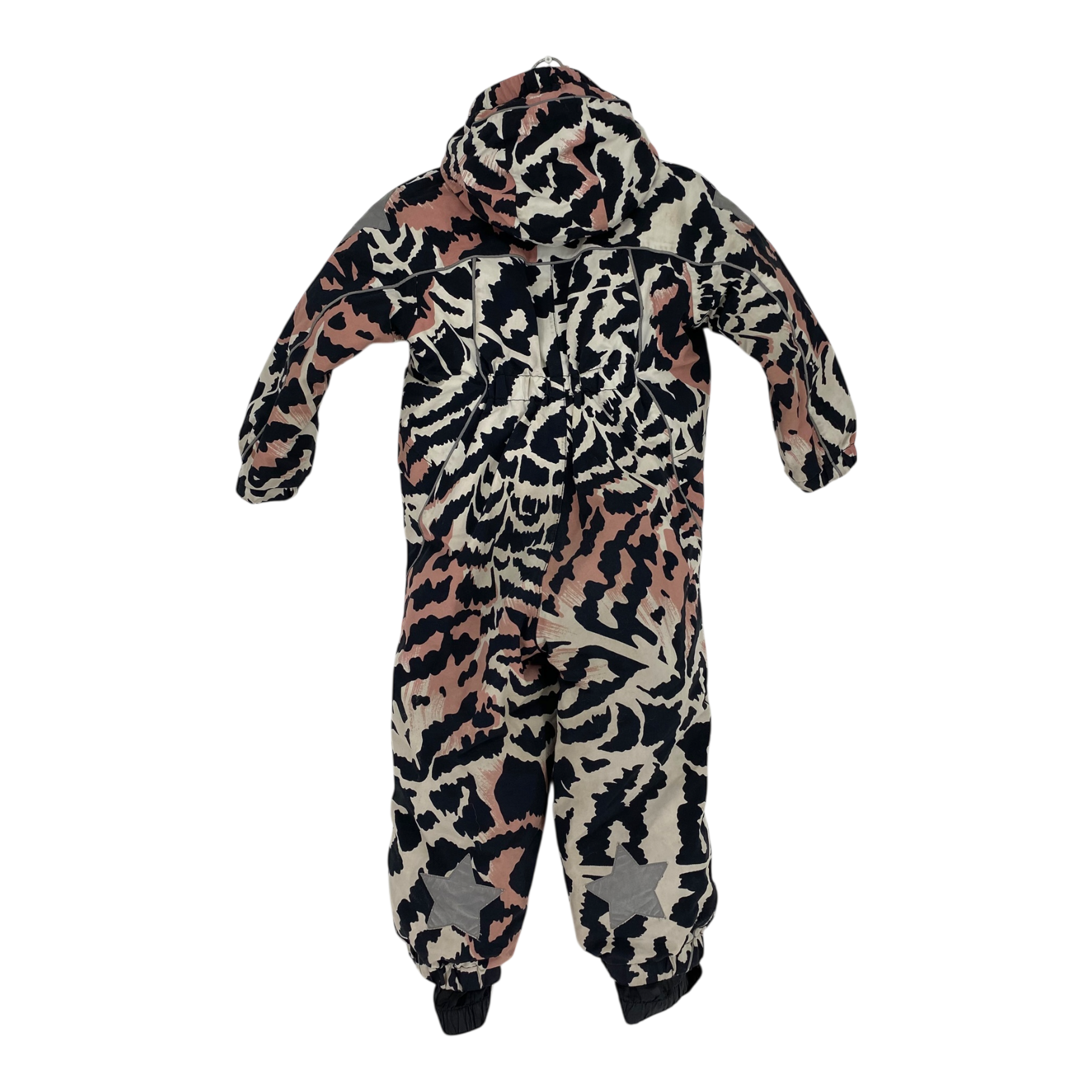 Molo Polaris is a functional snowsuit with reflector piping. Polaris has a detachable hood, a covered front zip closure and Molo's star reflectors on the sleeves and legs. It has snow flaps at the legs and rubber stirrups. The snowsuit is originally windproof, waterproof and breathable and has taped seams with 15.000 mm column pressure.