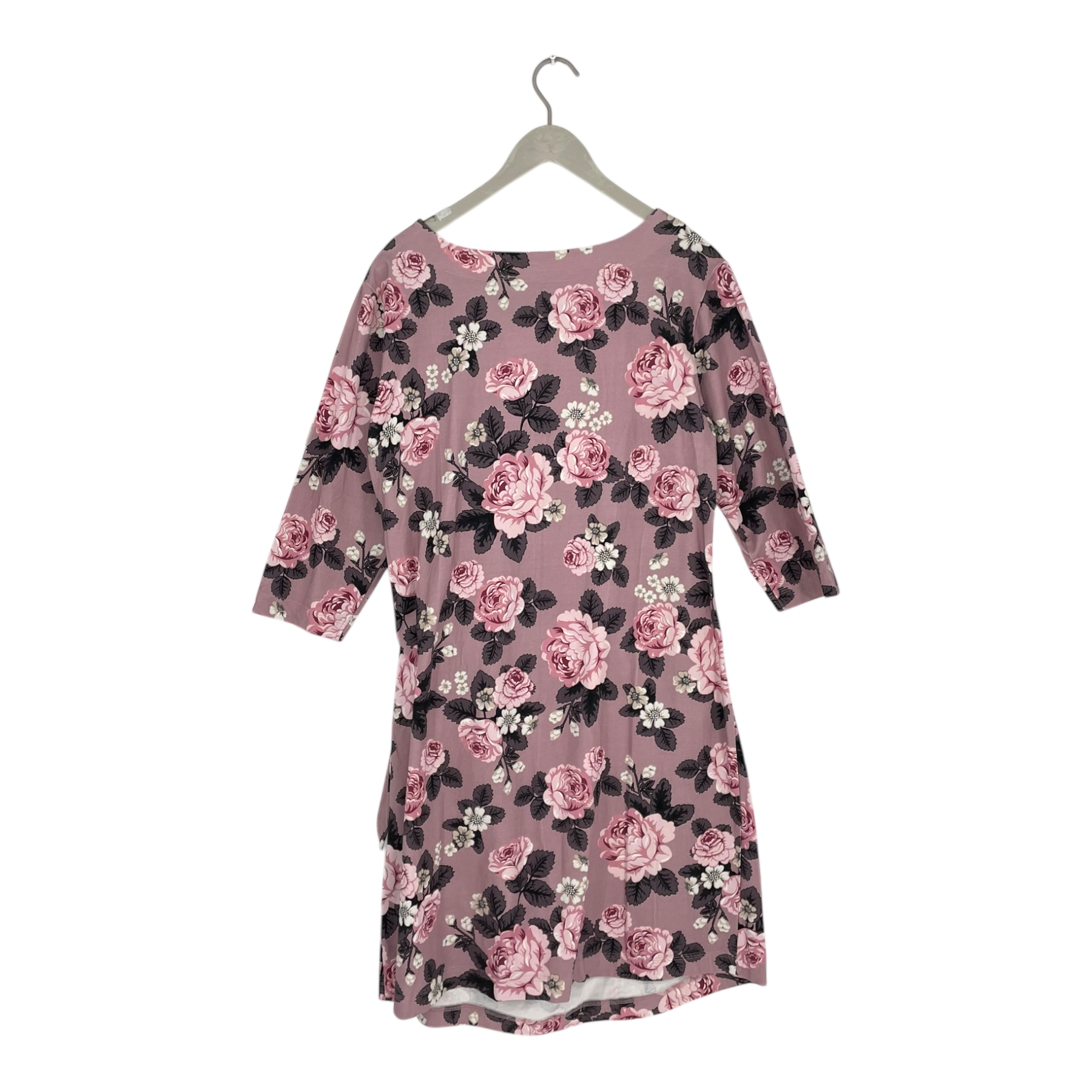 Ommellinen knot 3/4 sleeve tunic dress with a knot in the front in rose print.