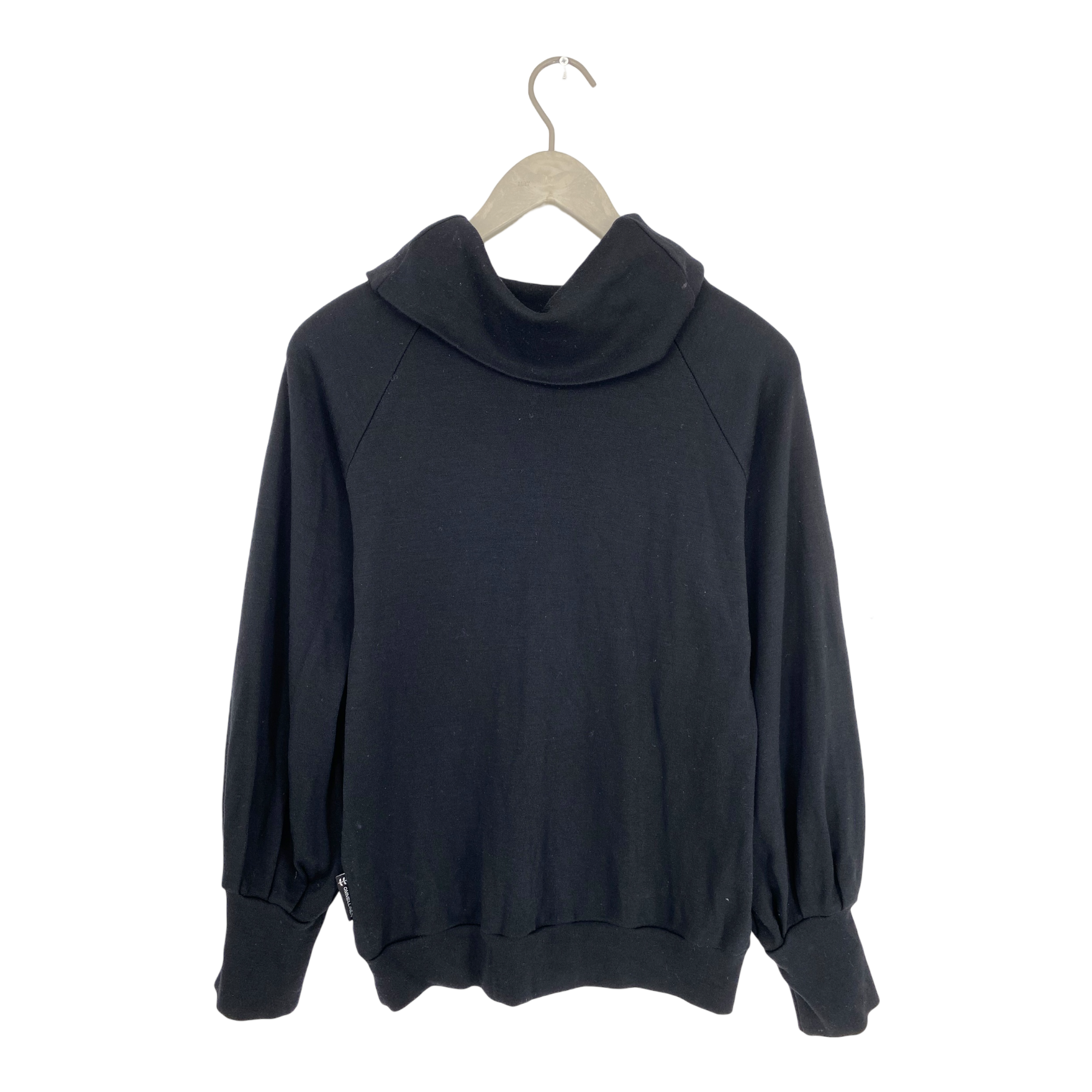 Ommellinen long-sleeved merino shirt with a loose turtleneck collar.