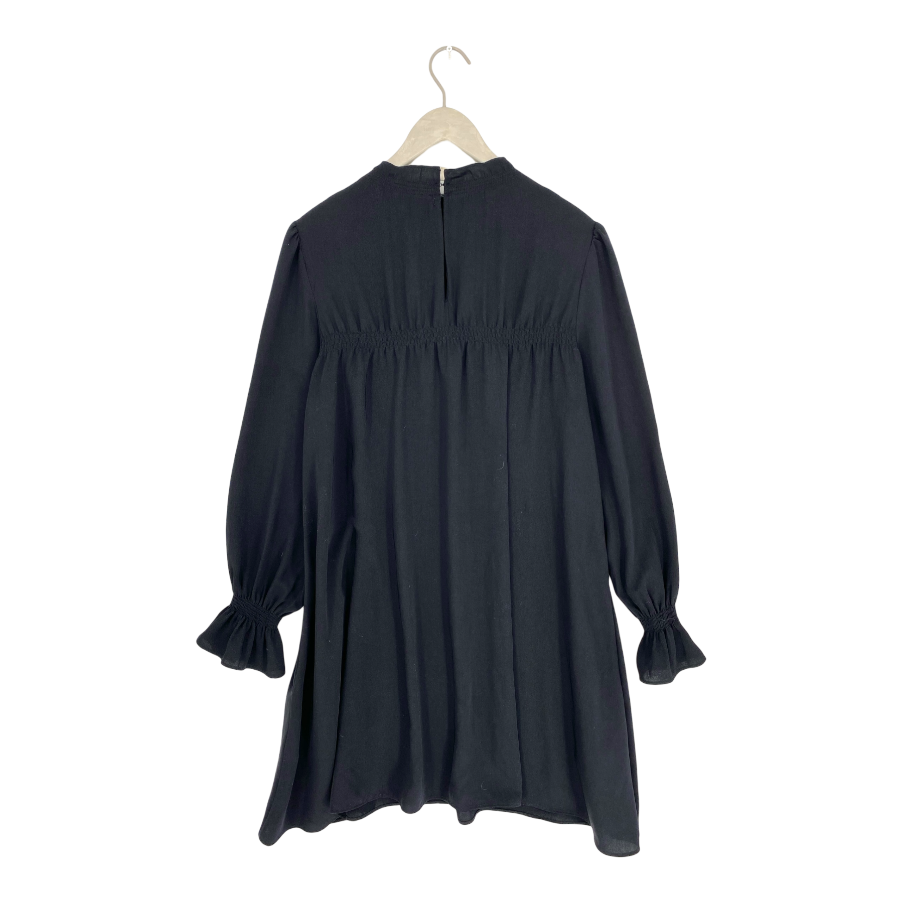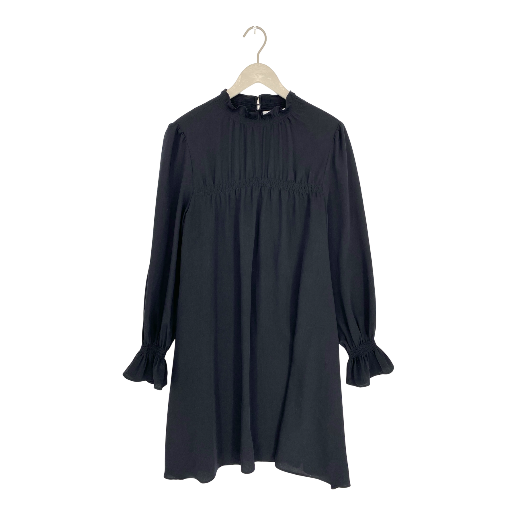 & Other Stories smock dress with gathering by the neck, chest and cuffs. The dress has long sleeves.