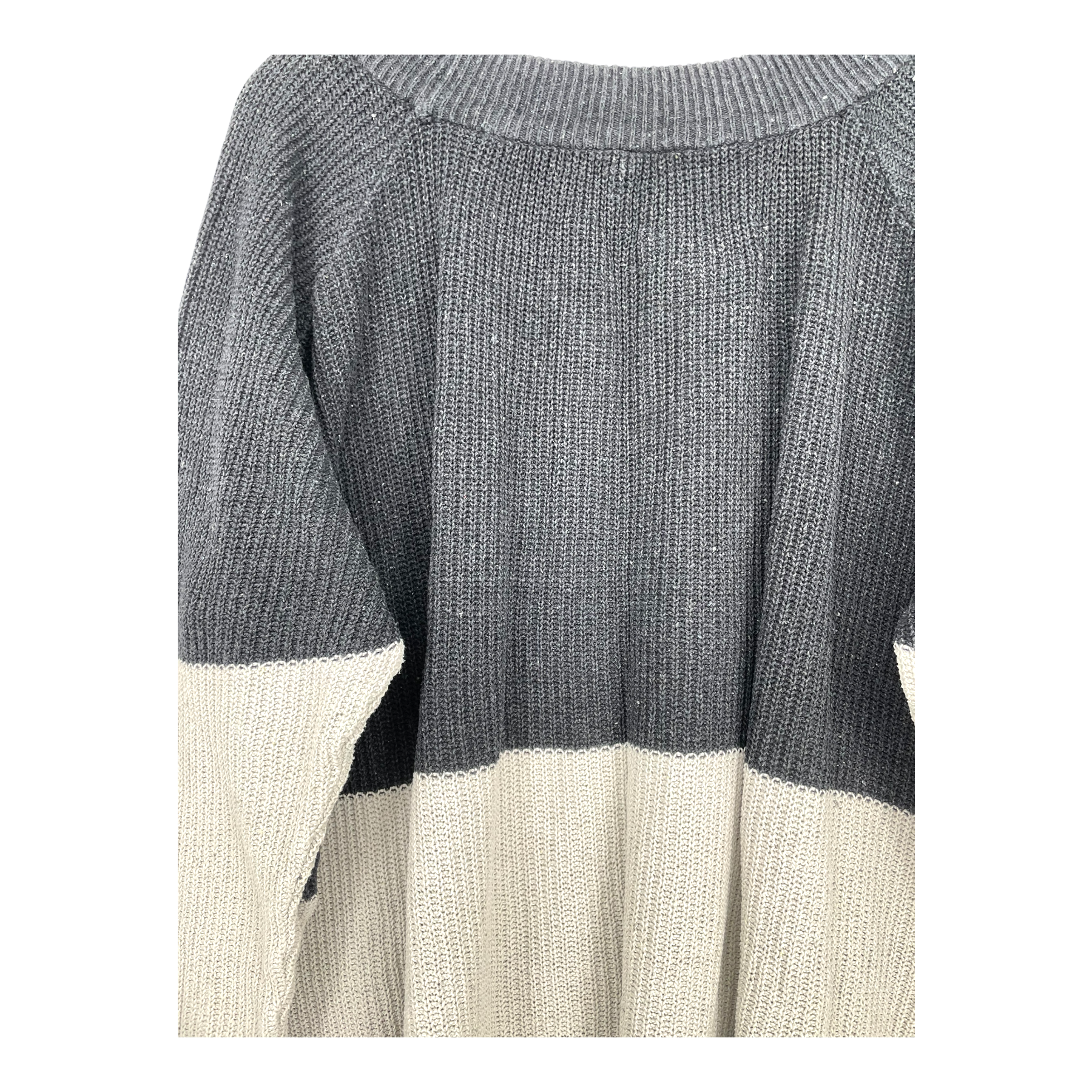 Papu women's knitted dress in black and white. The item is made from recycled cotton which makes the color and surface uneven. This item shows signs of wear on the surface, especially in the wash label and collar and it is hardened from the wash.