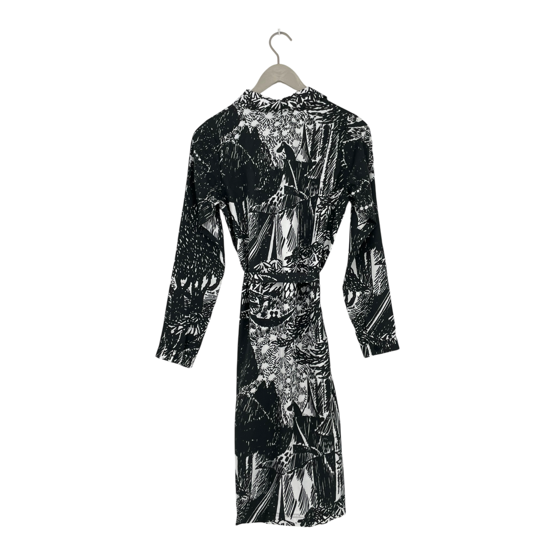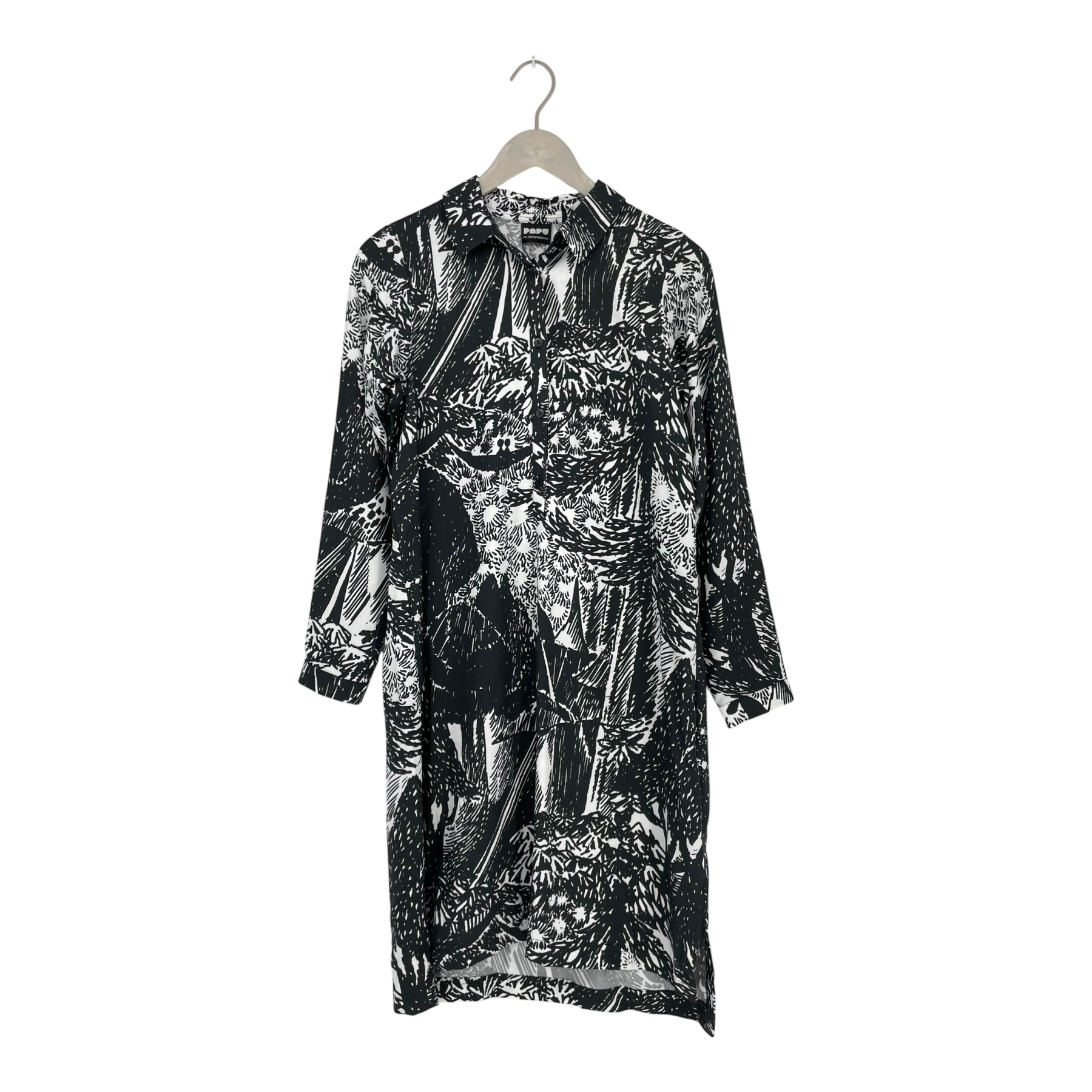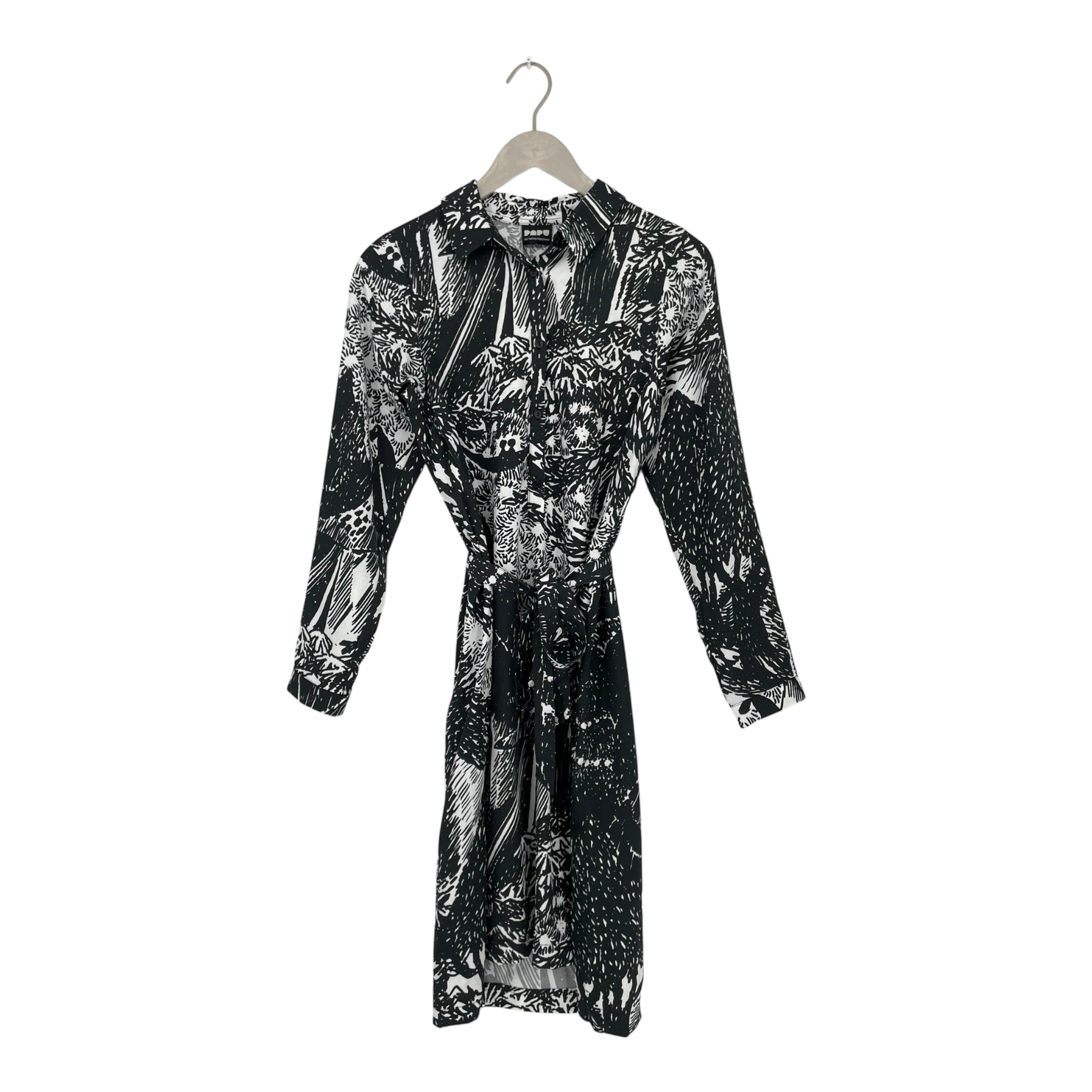 Papu women's woven lyocell dress with a collar, buttons in the front and a removable fabric belt in the whimsical Autumn garden print.