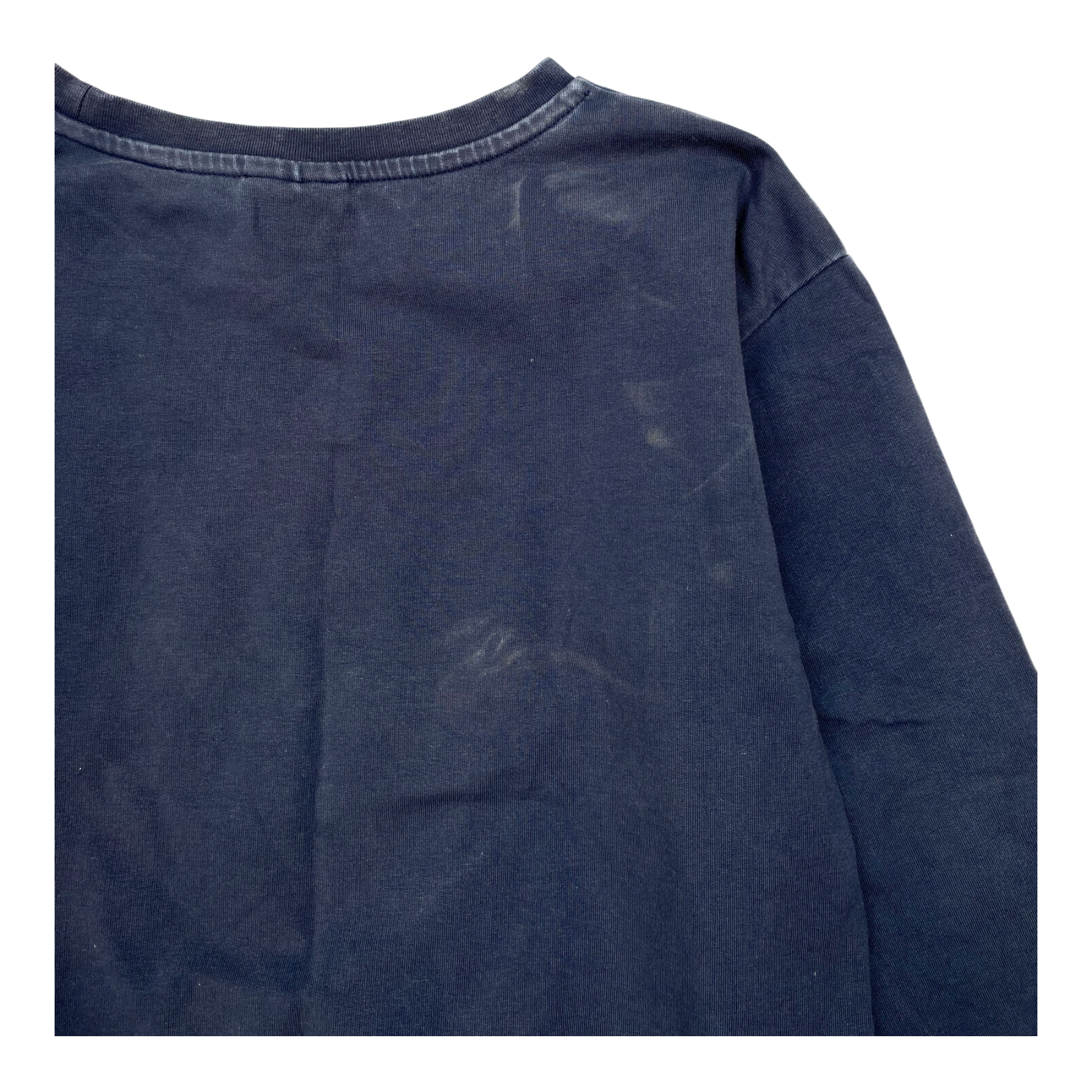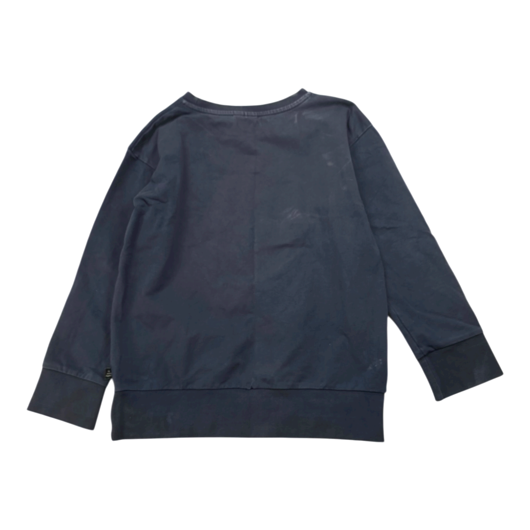 Papu long-sleeved college shirt with a round neckline, ribbing around the neckline, cuffs and hem. The original color has faded off.