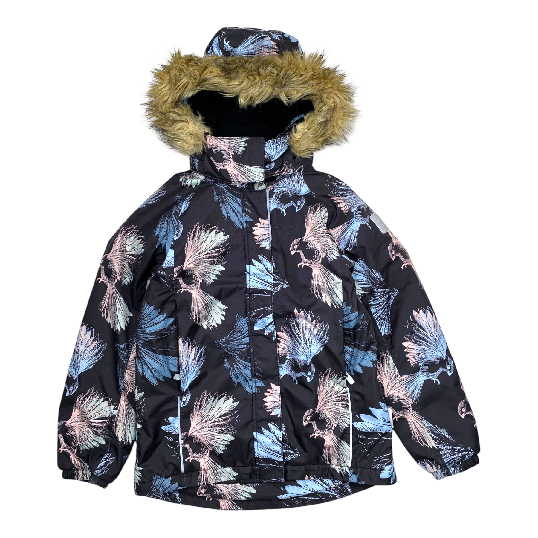 Reima Auhti winter jacket with detachable hood, zip pockets on the sides, and adjustable elastic on the waist.