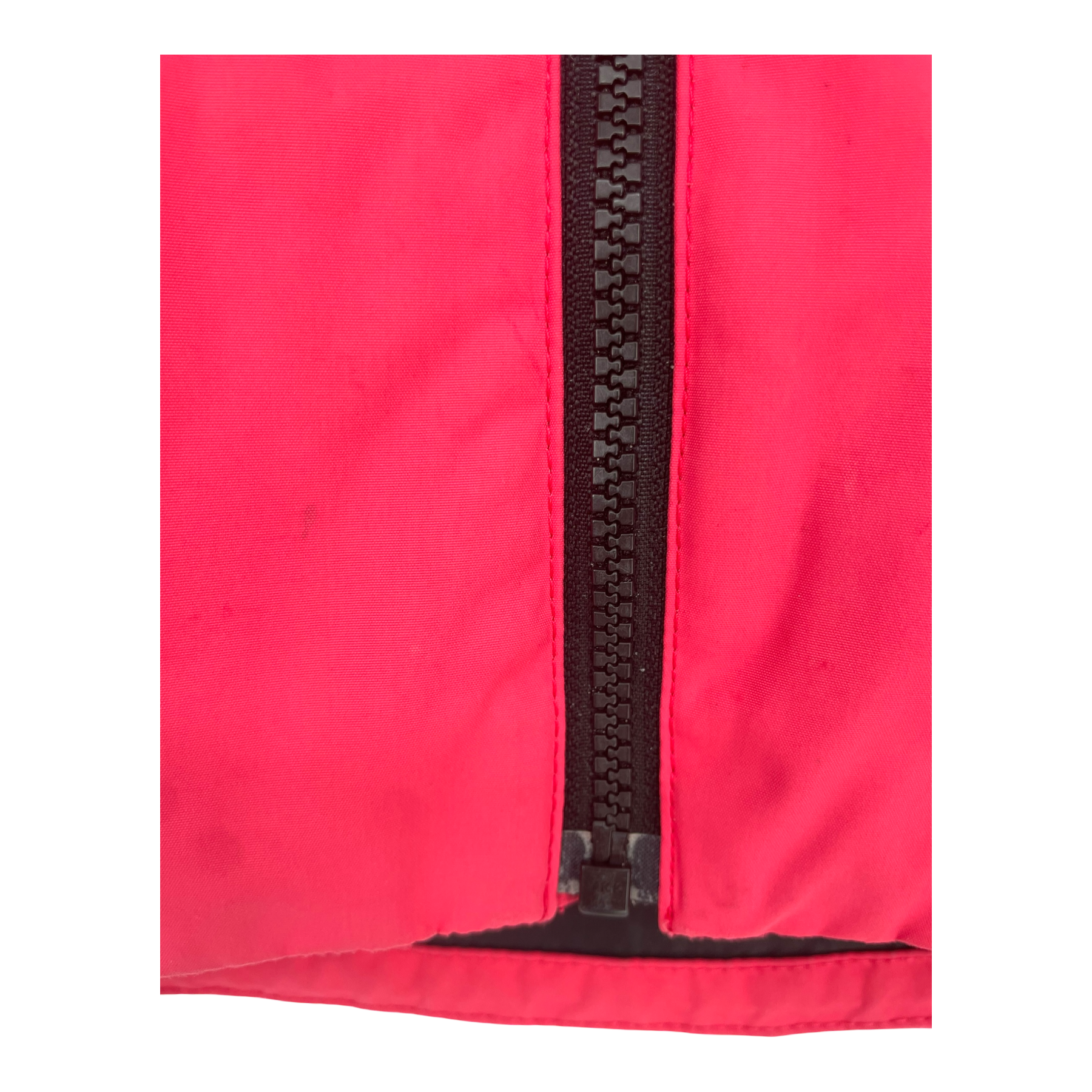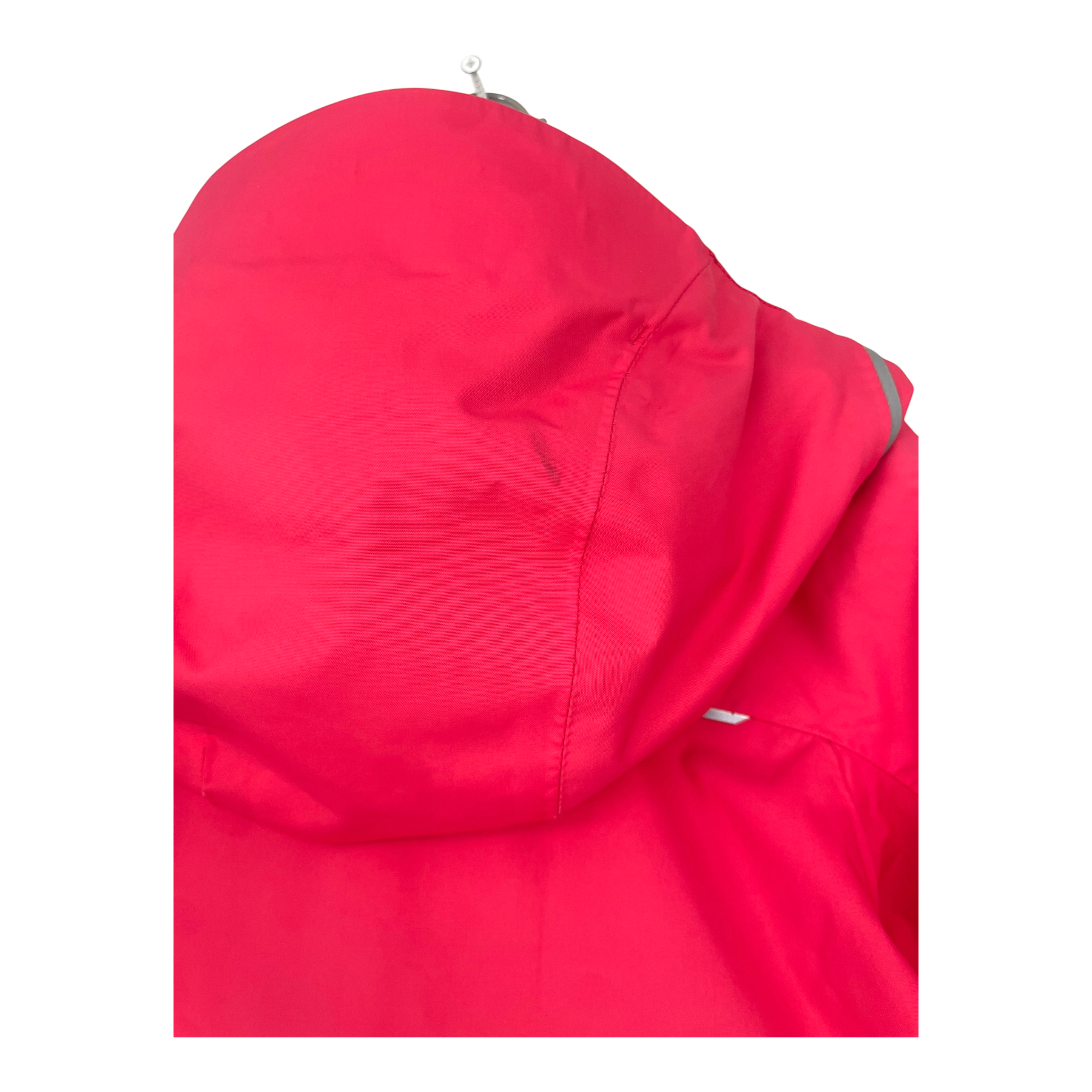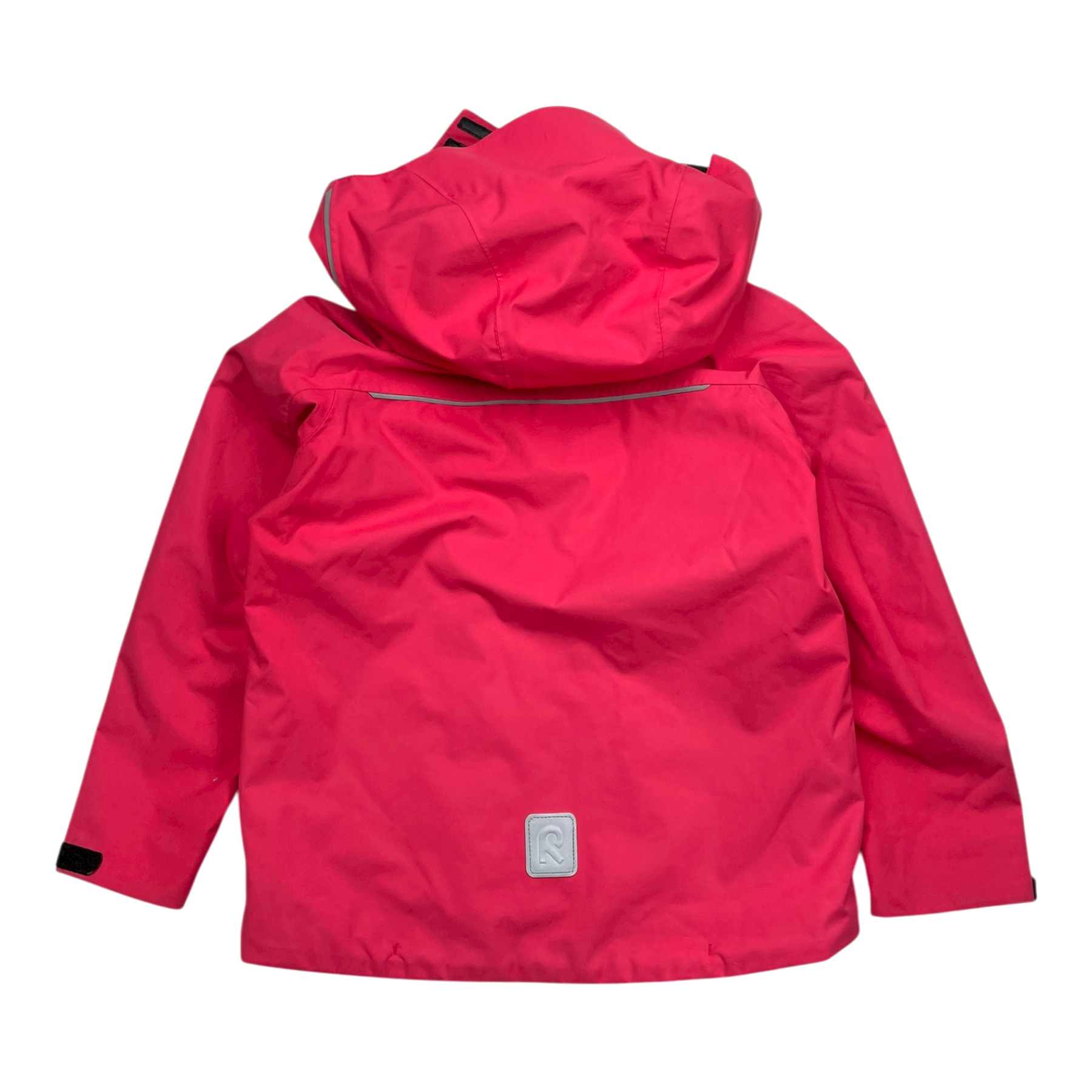 Reima Brisk mid-season jacket with a detachable hood, elastic cuffs, and two zip pockets in front. Hem is adjustable, and there are reflective details on the pockets. This jacket is originally wind- and waterproof. This Reimatec kids' 3in1 jacket can be used with a detachable inner fleece sweater, but in this item the inner fleece sweater is missing.