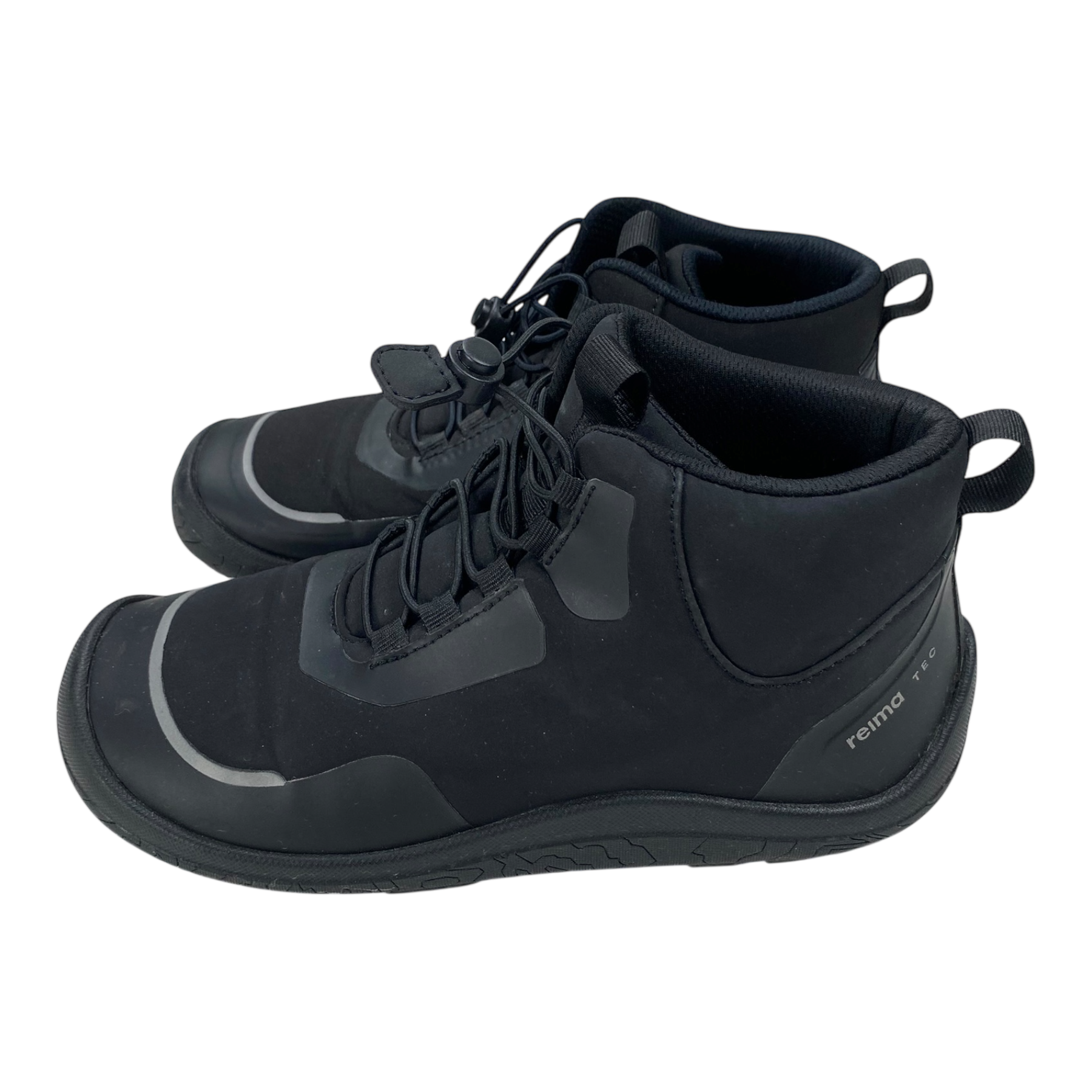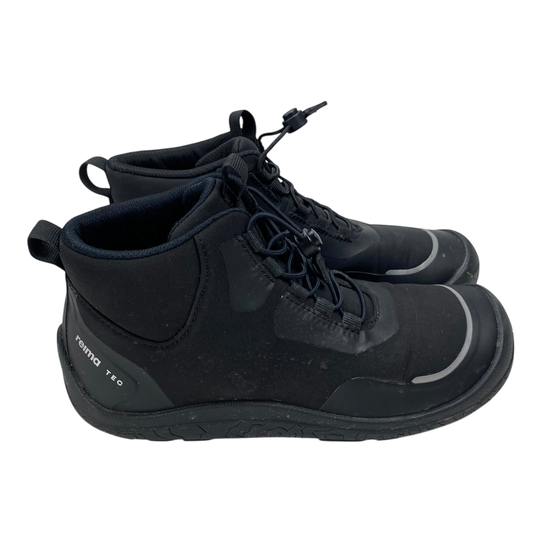 Reima Hyppii barefoot shoes with hook-and-loop fastening. Easy-to-use, comfortable all-weather boots for fall and spring. Shoes are originally waterproof and boots offer a waterproof membrane and comfy lining to keep kids' feet dry.