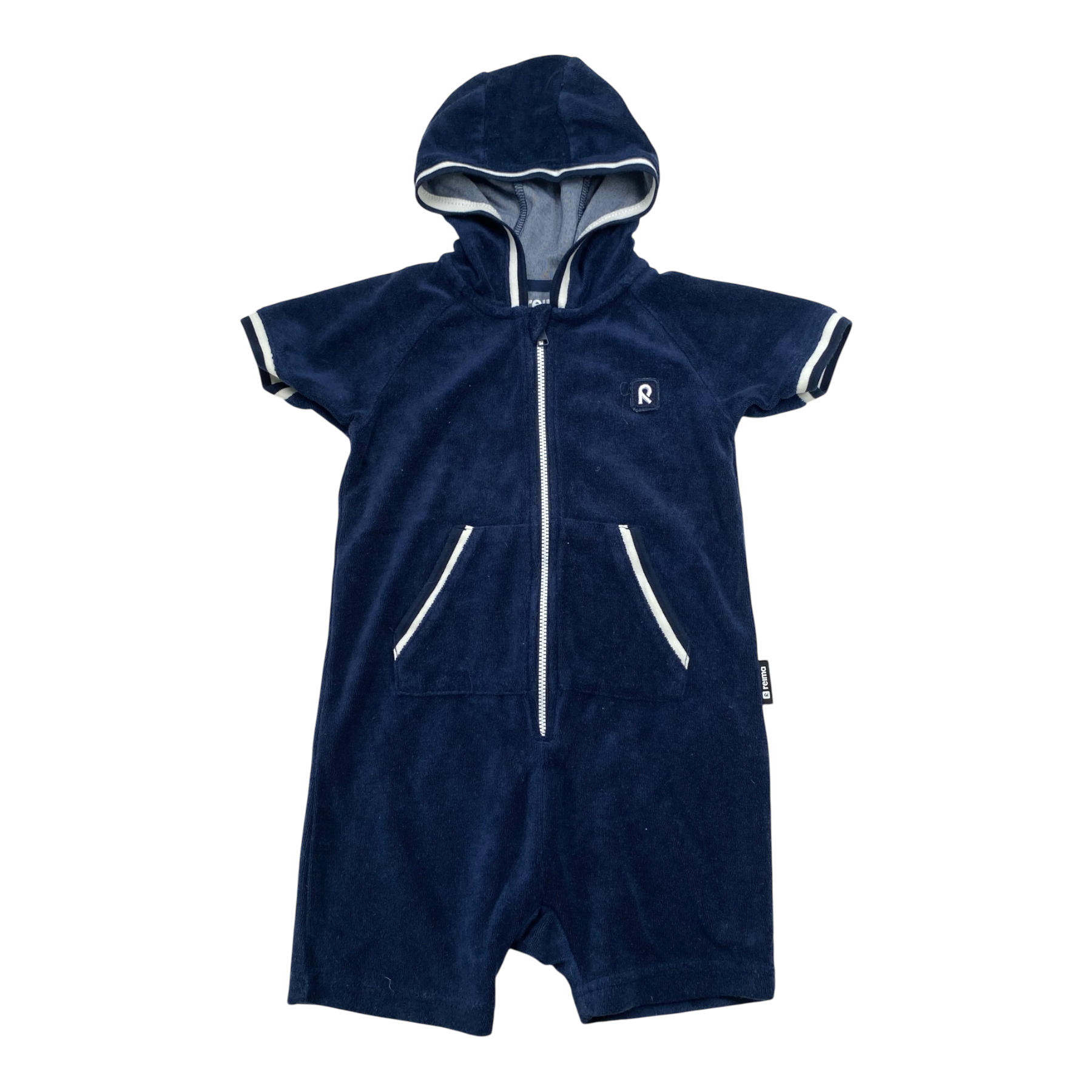 Reima Lokoisa comfortable and soft toddlers' terry bodysuit with UV protection. A fun and cuddly cover-up for after swimming, this bodysuit has a handy hood and a sun protection factor of 50+ for complete coverage against the rays. The full-length zipper makes it easier to get dressed, and the garment has small pockets for collecting the best shells from the beach.
