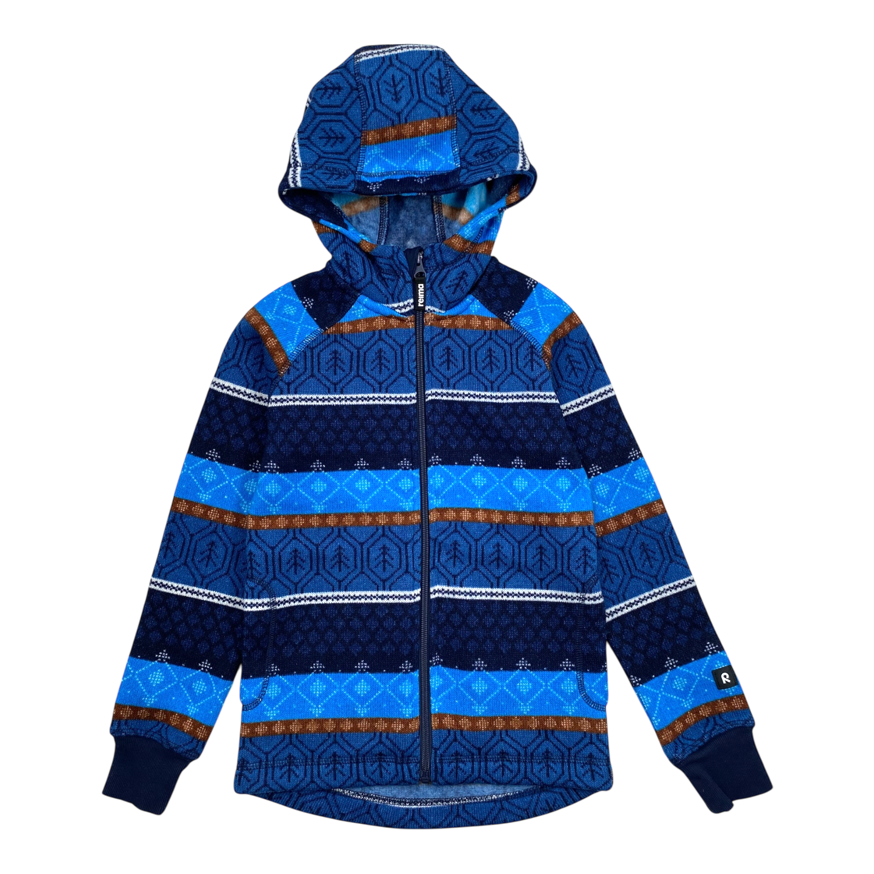 Reima Northern fleece jacket with a zipper in the front, a hood, and pockets on the sides.