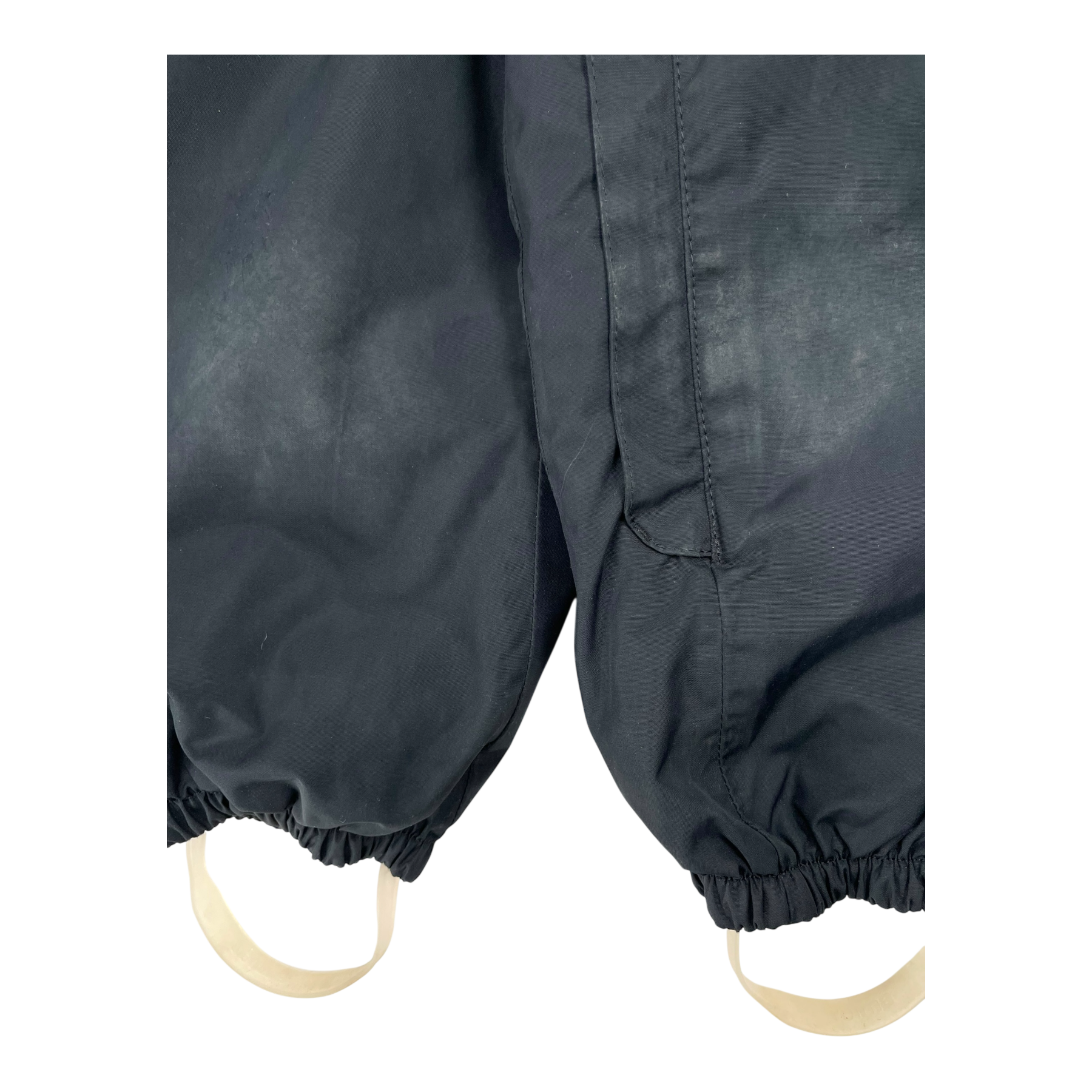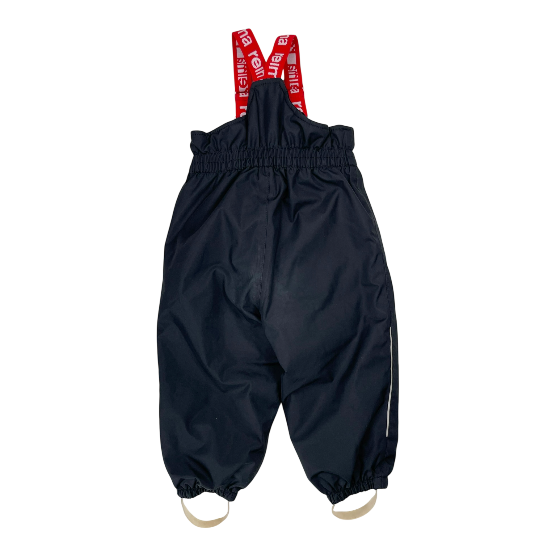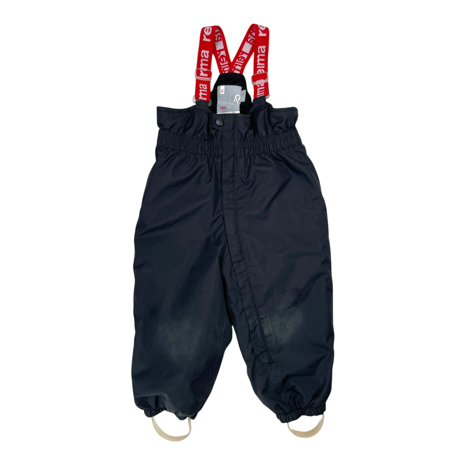 Reima Stockholm padded winter outdoor pants with adjustable elastic suspenders and an elastic waist. Long zip closure, durable foot loops, and reflective details. The material is originally waterproof up to 10,000mm water column, and all seams are sealed.