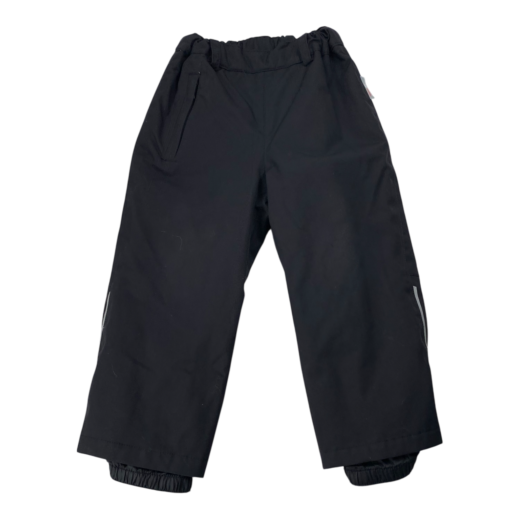 Reima Topakka padded outdoor pants for winter with zip pocket on the side, adjustable elastic on the waist, velcro adjustment, and snow locks at leg ends. Originally wind- and waterproof up to 10,000mm water column. All seams are sealed, very durable material, Fellex® insulation.