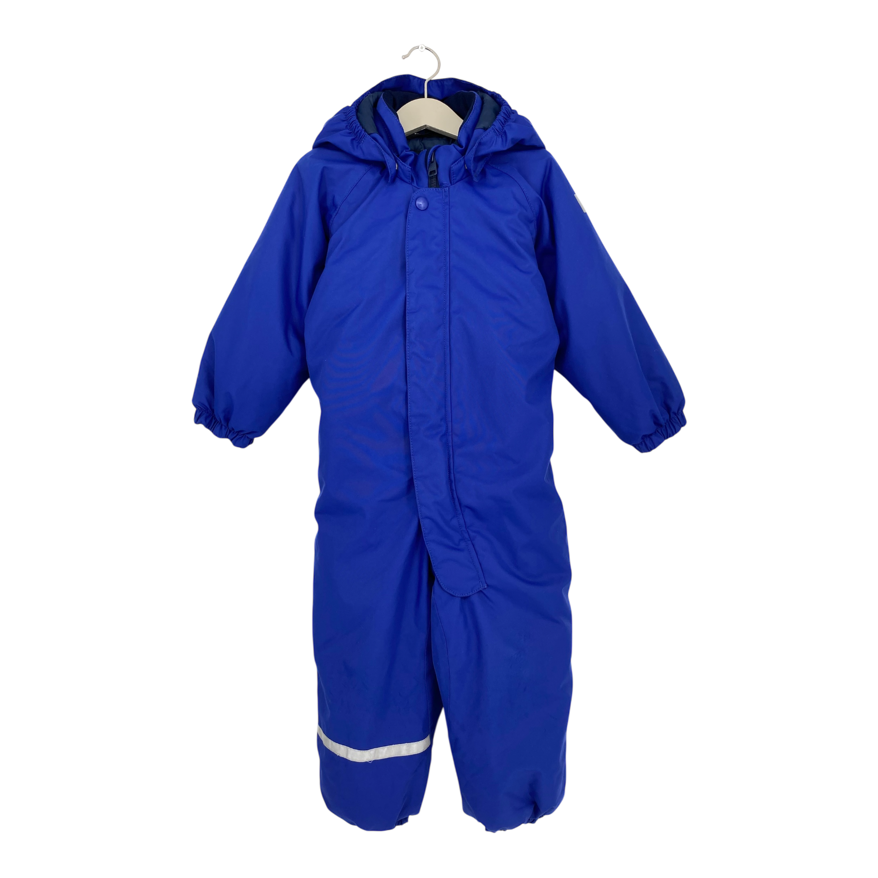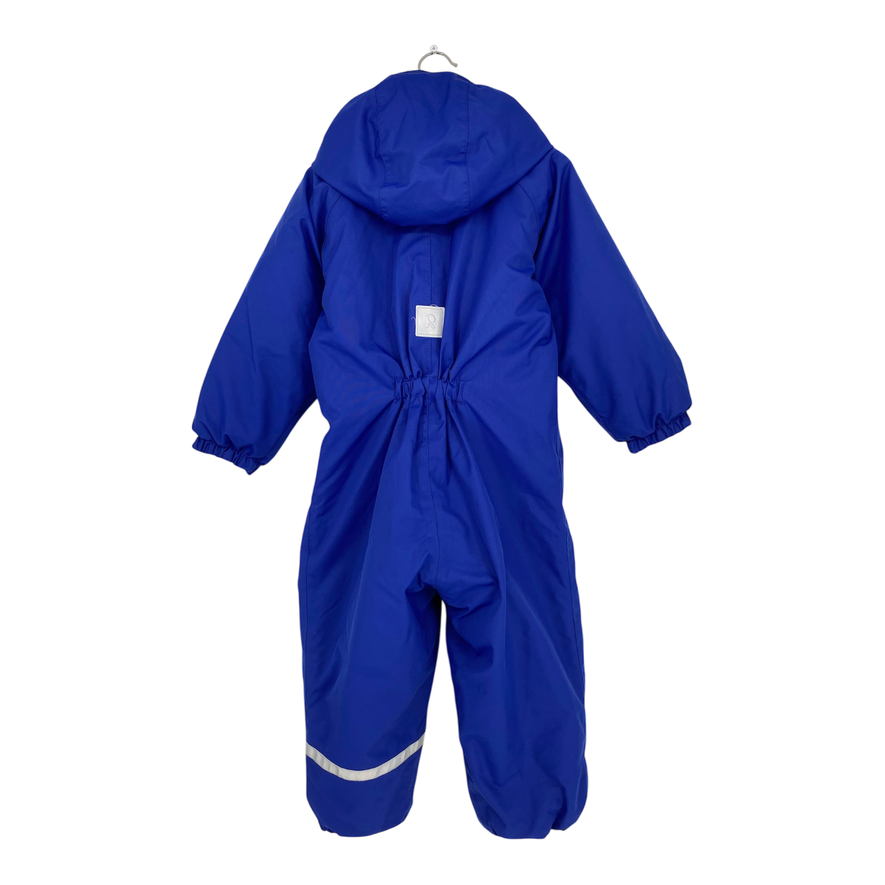 Reima Tuohi winter overall with detachable hood, durable foot loops, and zip closure. The material is originally wind- and waterproof.