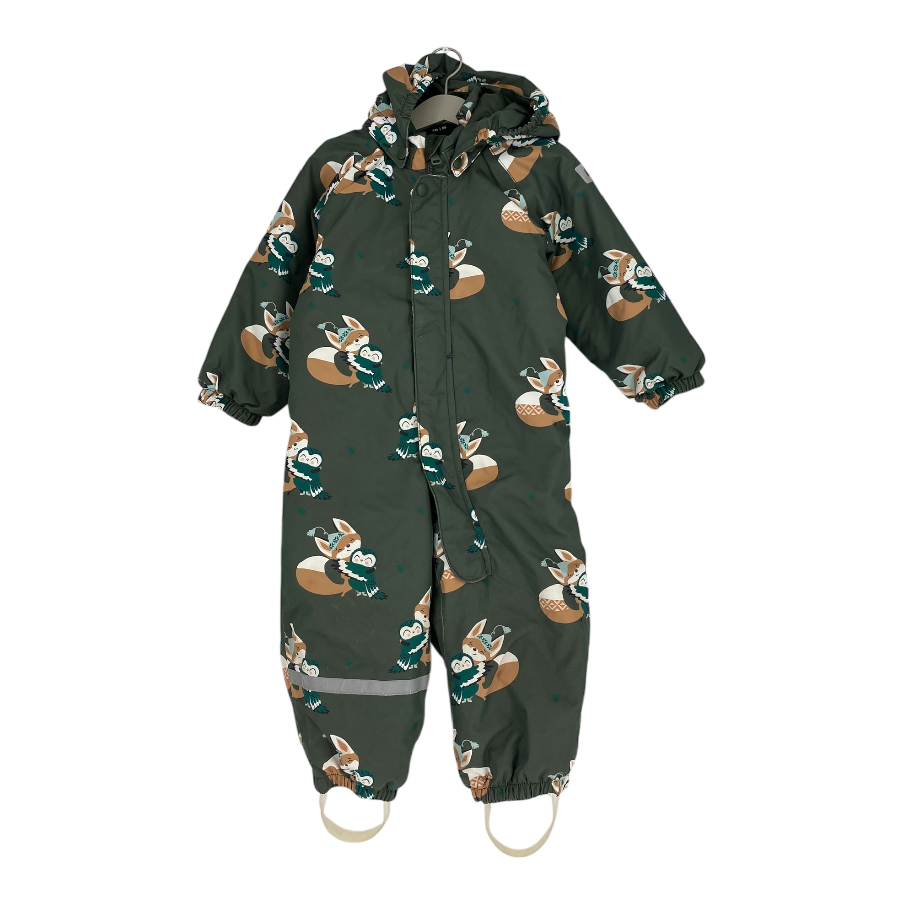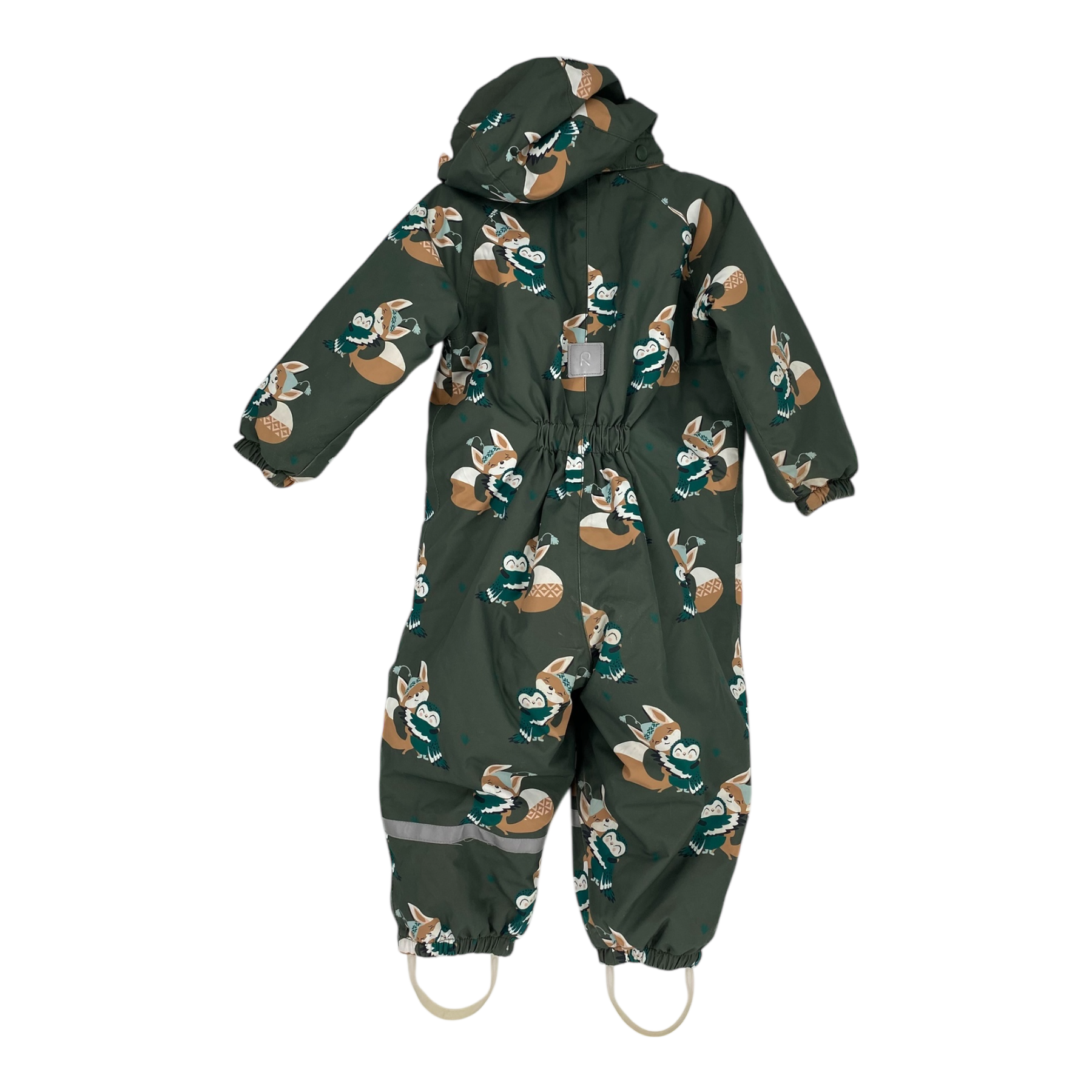 Reima Tuohi winter overall, classic snowsuit is ideal for all kinds of outdoor fun. Overall has a detachable hood, reflective details, and durable foot loops. The material is originally waterproof up to 10,000mm water column, and the main seam are sealed. The overall is also wind- and dirt repellent, so it's easy to take care of. The item has signs of use in the knee and butt area.