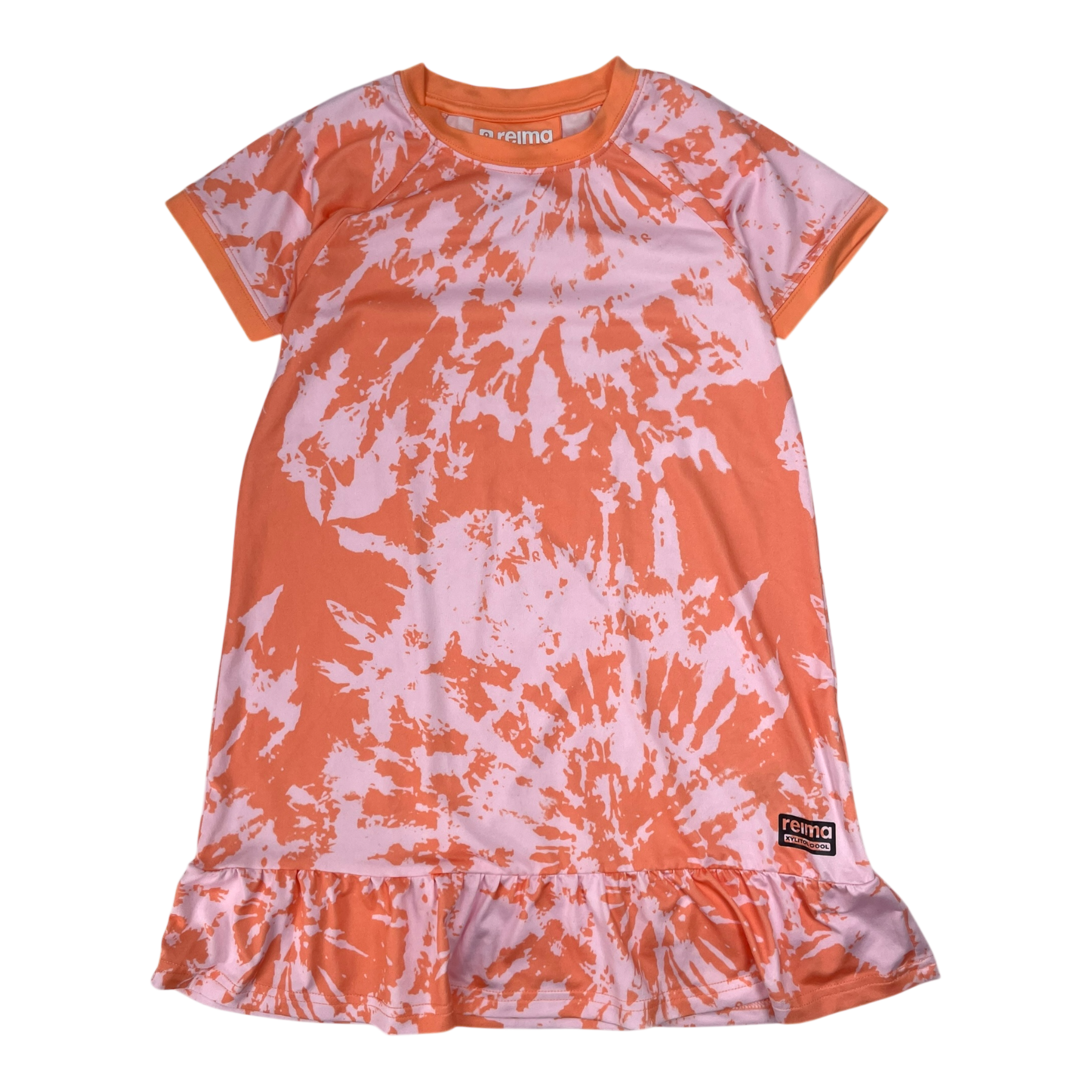 Reima Tuulonen dress with short sleeves and frilled hem. It's made from our Xylitol Cool material that stretches four ways and is finished with a cooling treatment. The Reima dress comes originally with UV protection factor 40+.