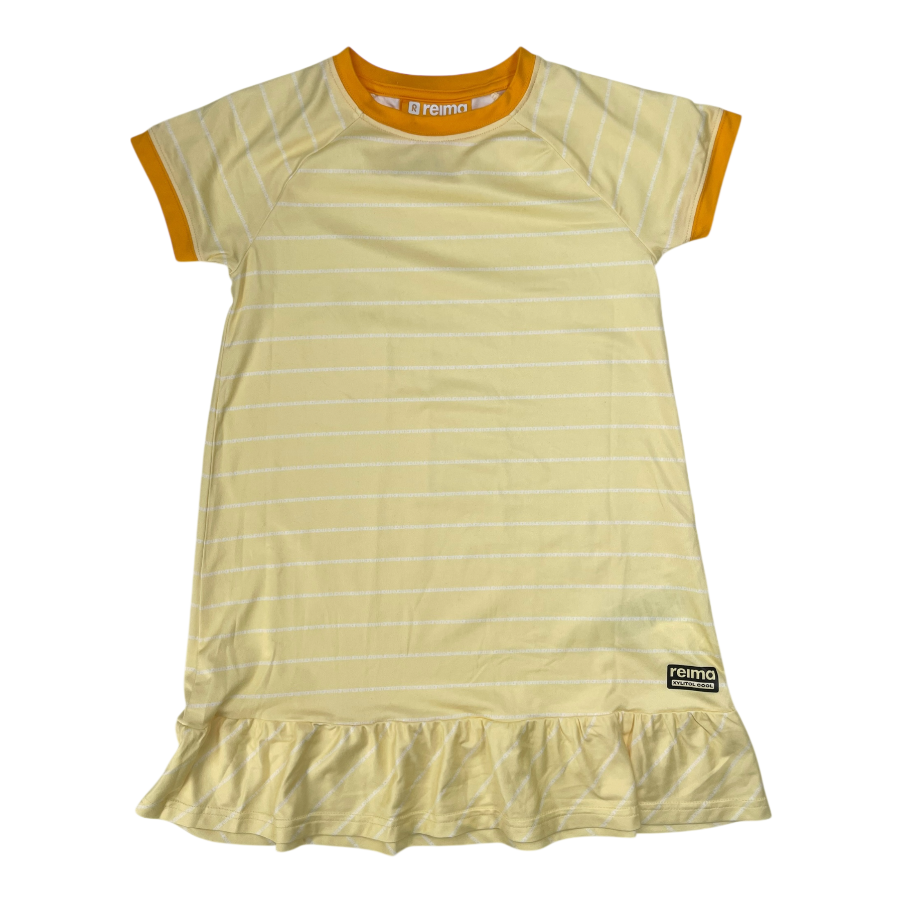 Reima Tuulonen dress with short sleeves and frilled hem. It's made from our Xylitol Cool material that stretches four ways and is finished with a cooling treatment. The Reima dress comes originally with UV protection factor 40+.