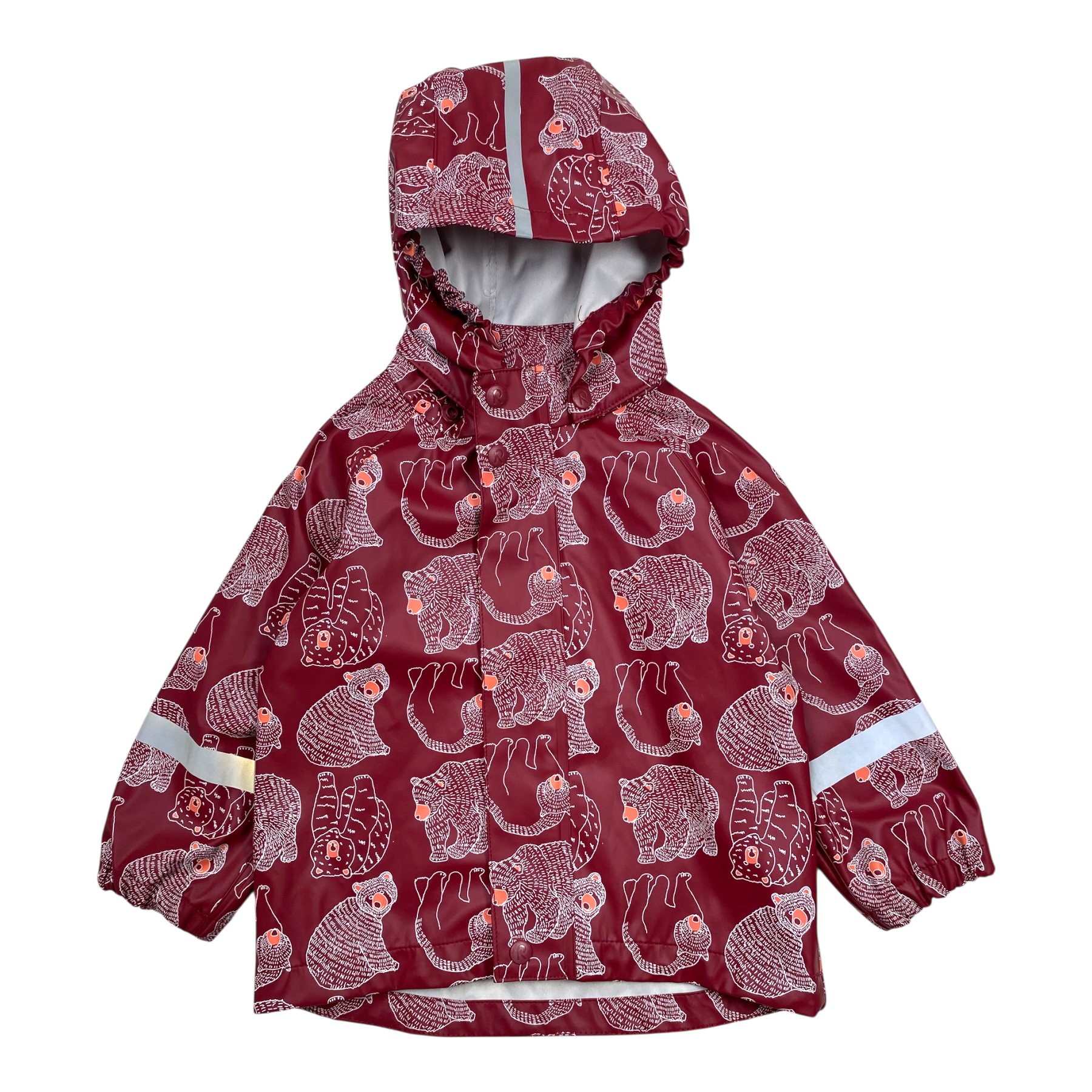 Reima Vesi rain jacket for kids with reflective details and detachable hood.