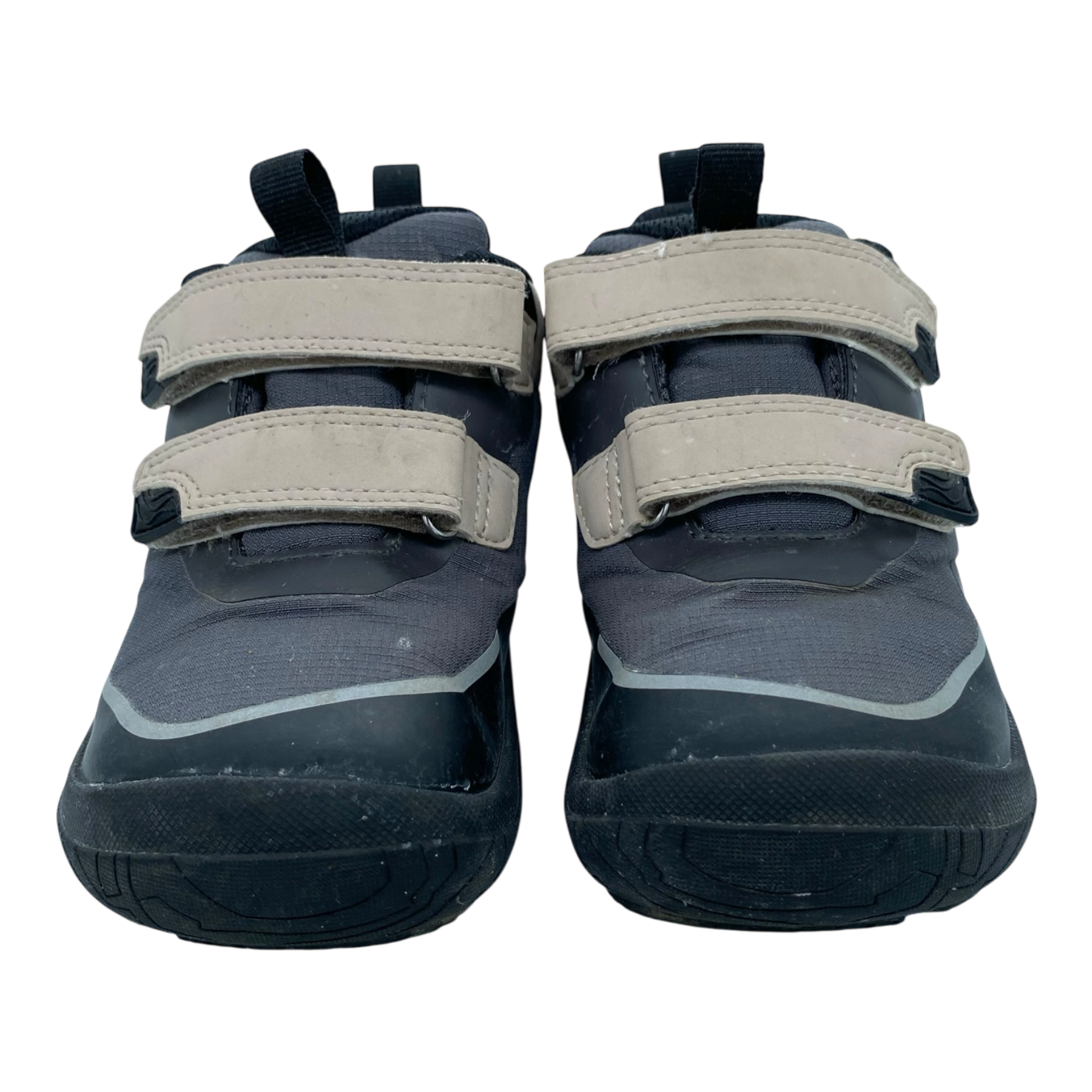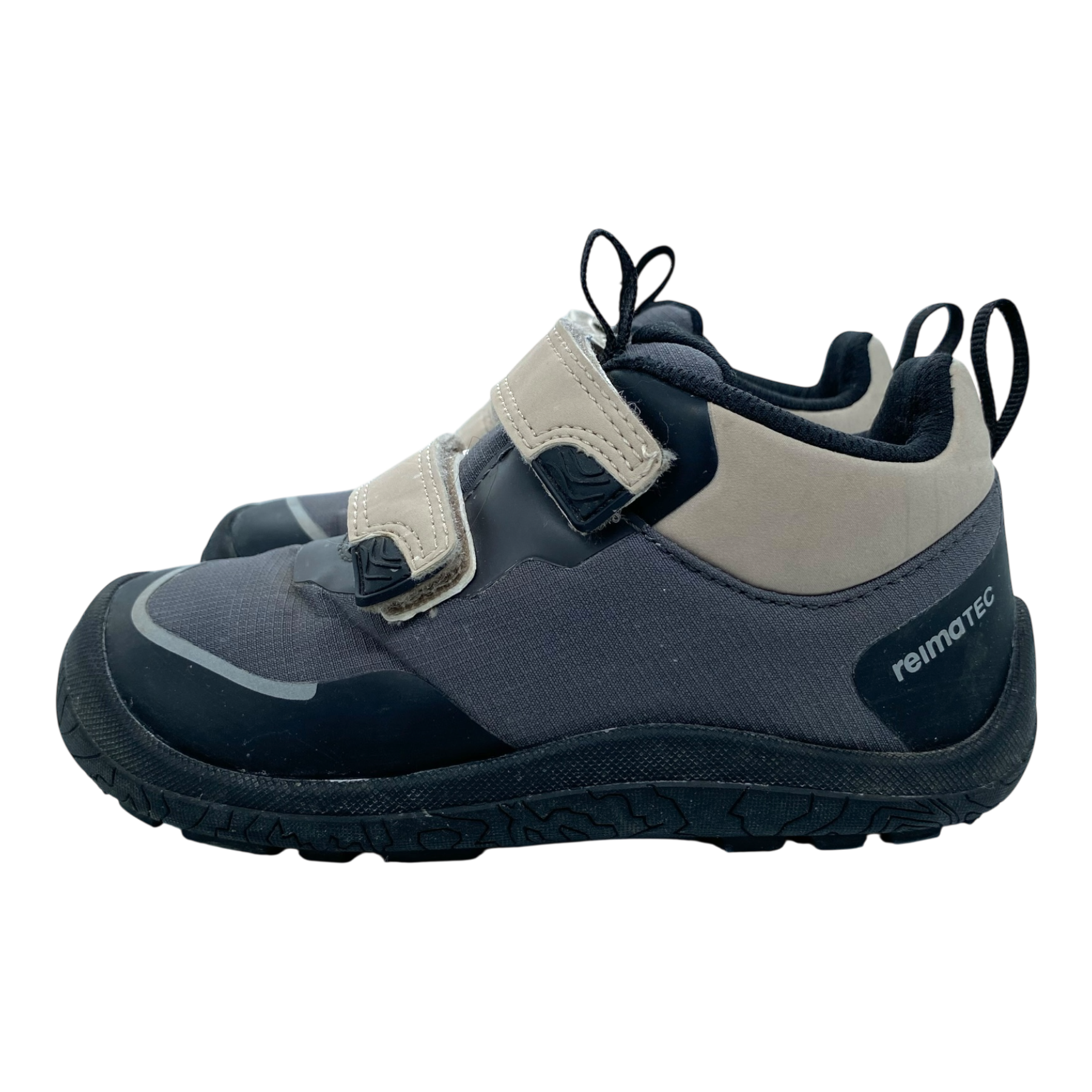 Reima Viikari barefoot outdoor shoes with hook-and-loop construction which makes them easy to put on. High outsole edge protects the toe area. These shoes feature a waterproof membrane to defy changing weather and a barefoot last with zero heel drop for a natural stance. A flexible sole, wide toe box, and grippy rubber outsole enable unrestricted natural movement.